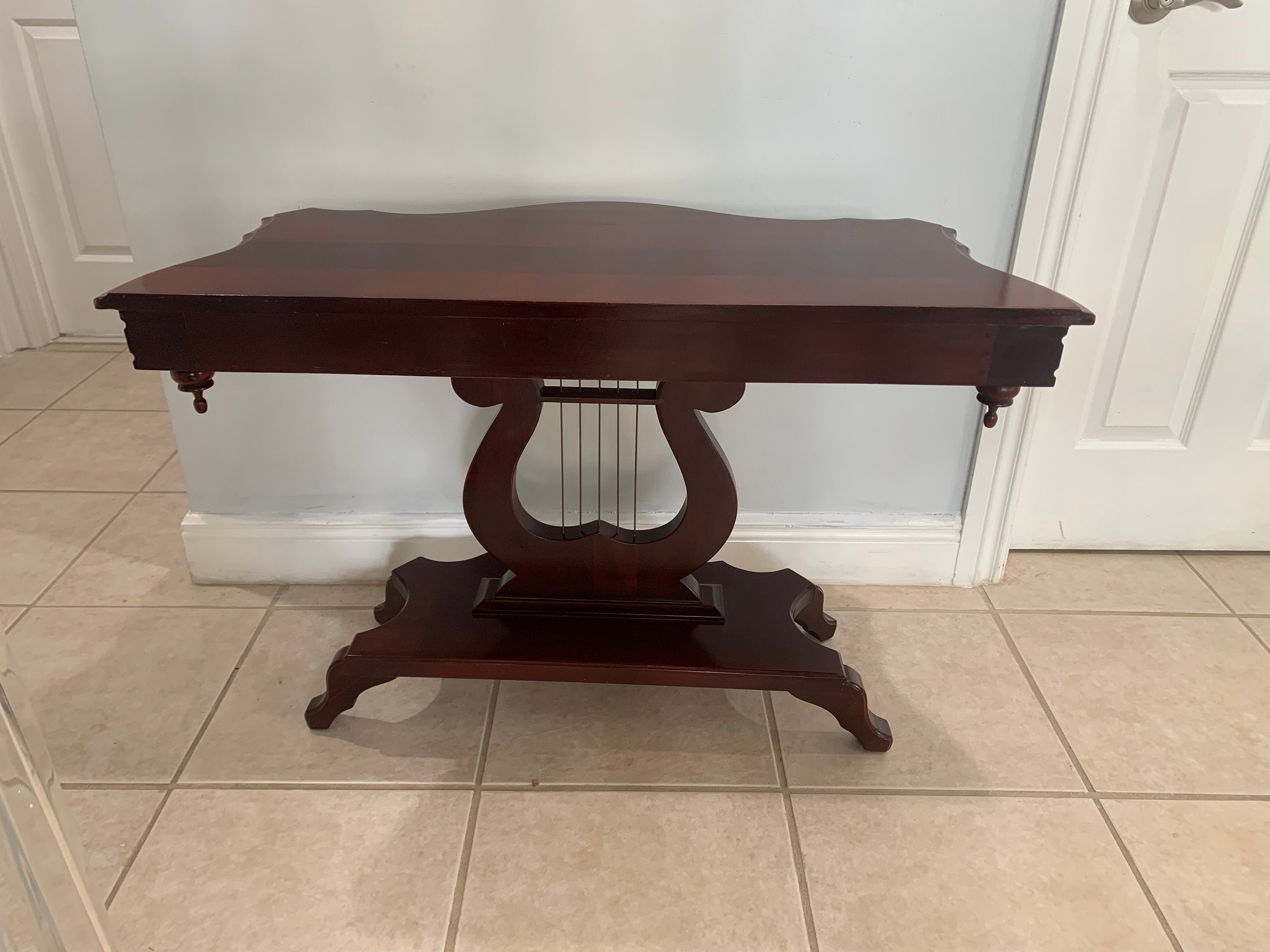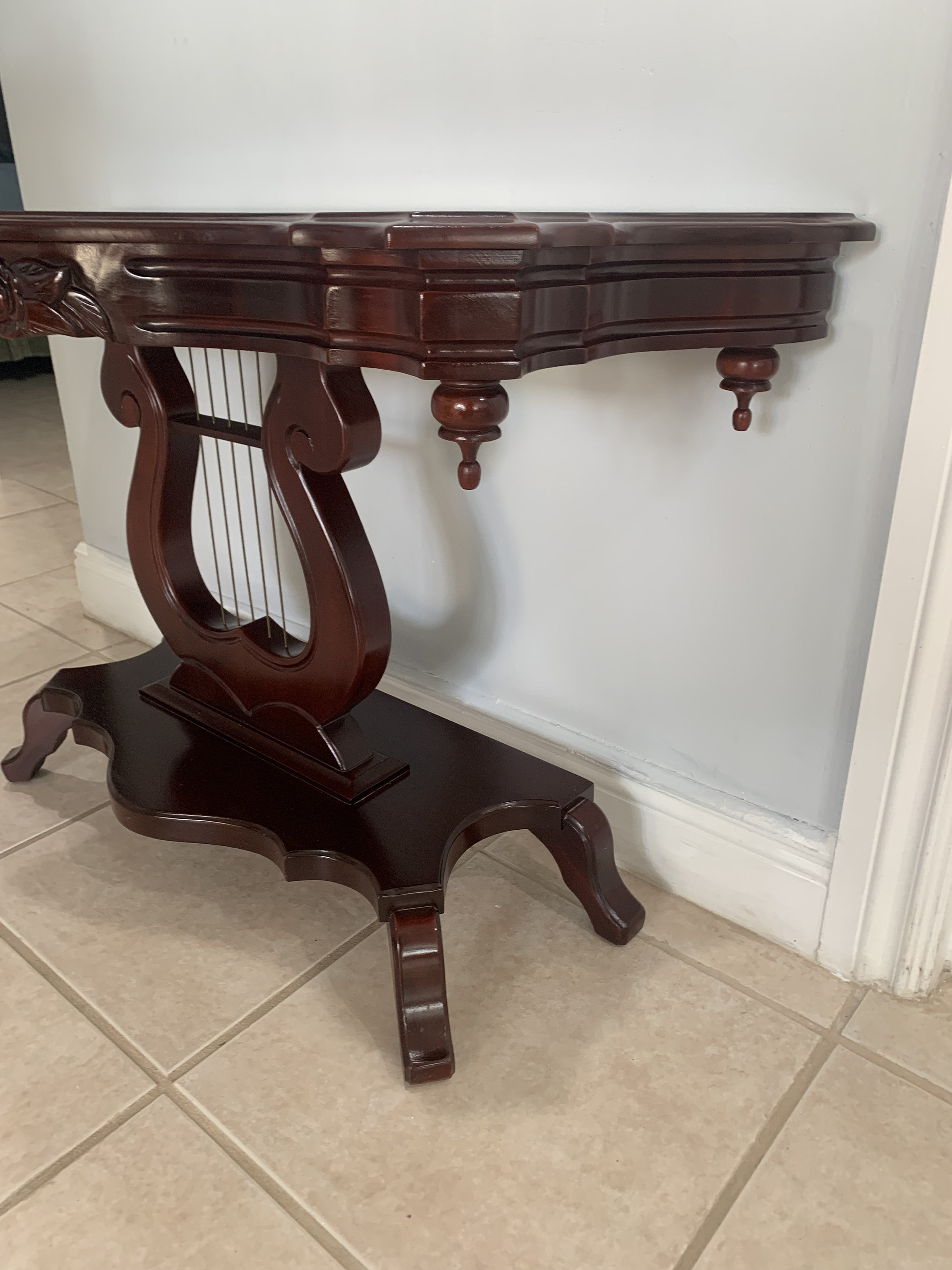 Victorian Style Mahogany Harp Lyre Console Table
