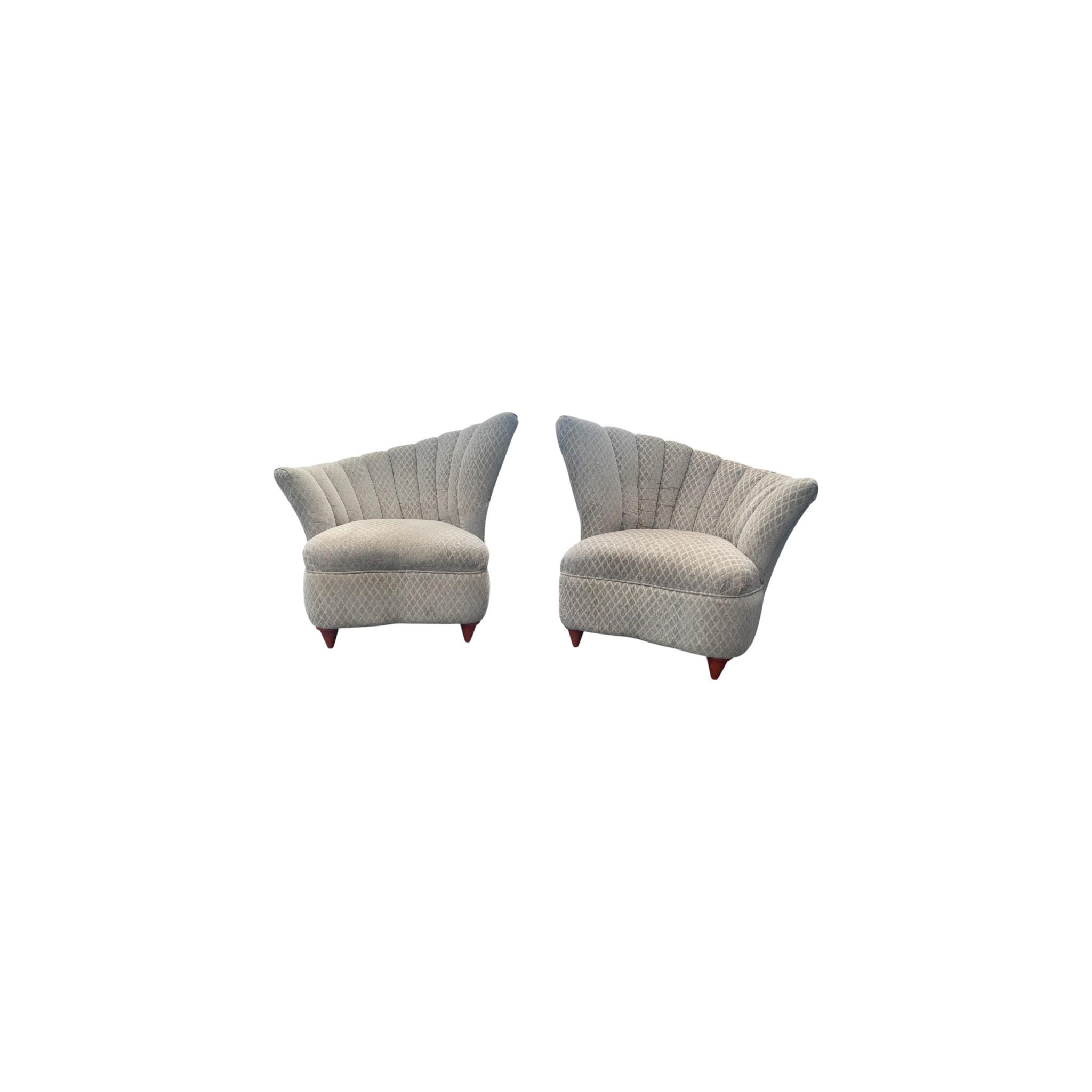 This listing is for a Hollywood Regency Art Deco Style Asymmetrical Channel Back Chairs (Pair)