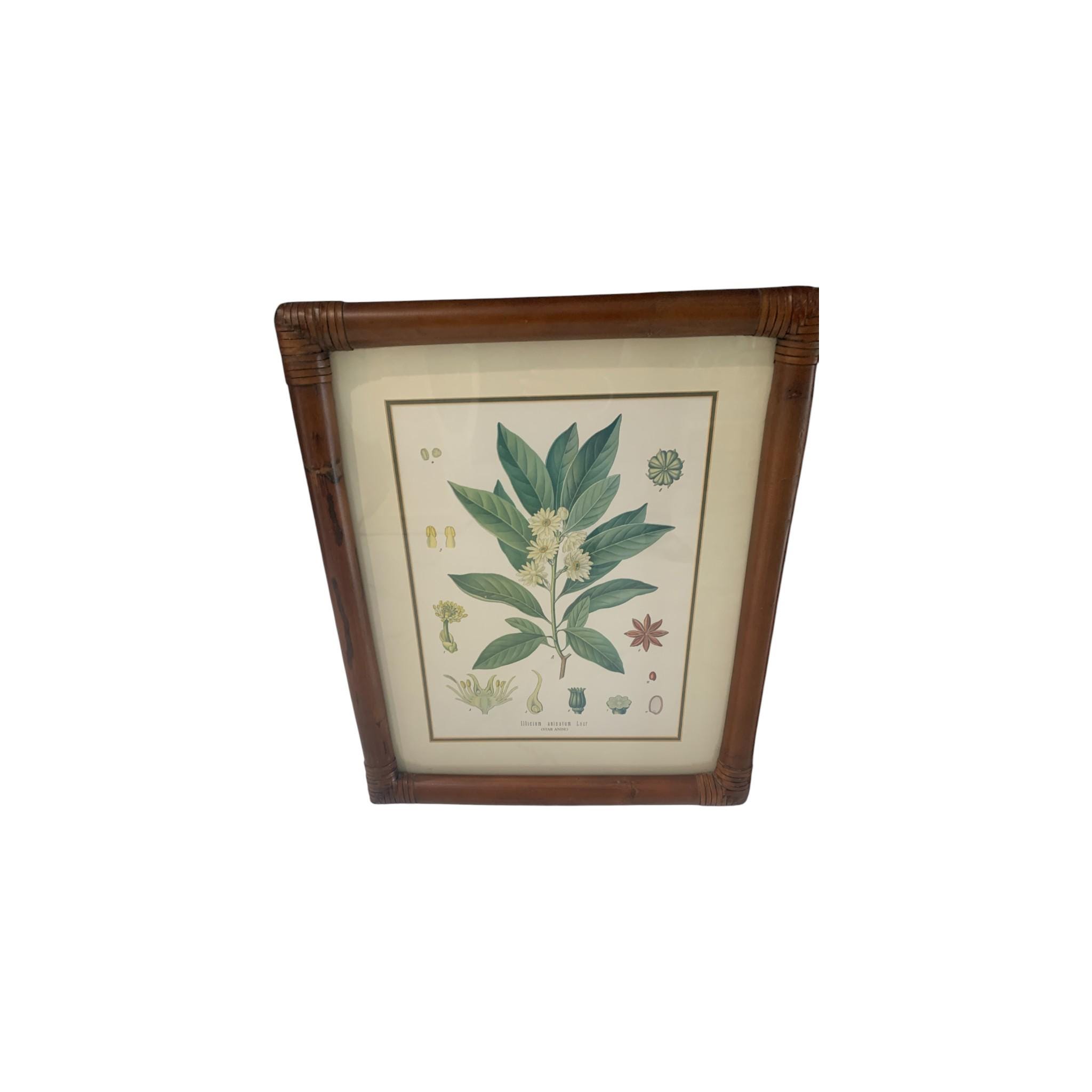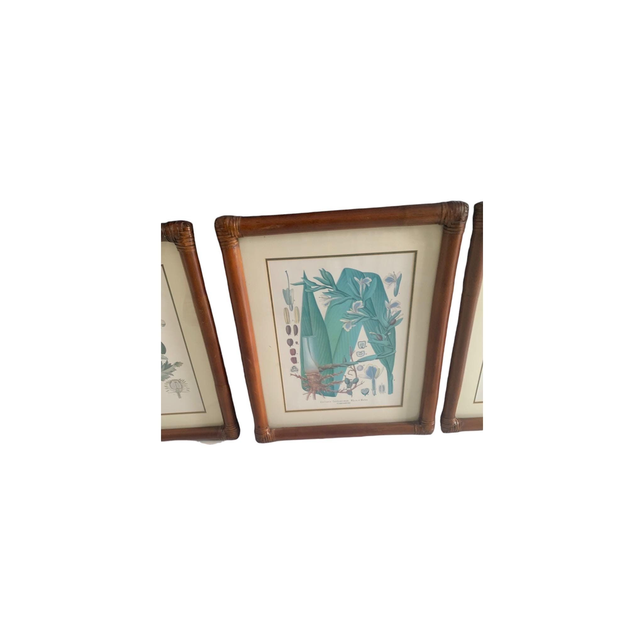 The product is a set of six vintage botanical prints by artist Kohler's Medizinal-Pflanzen atlas. These prints feature various plants and were produced using chromolithograph technique. The prints are framed in bamboo and leather straps and make a unique addition to any art collection or home decor. Each print captures the beauty and detail of different plant species, making it a visually appealing and educational piece for any plant enthusiast.