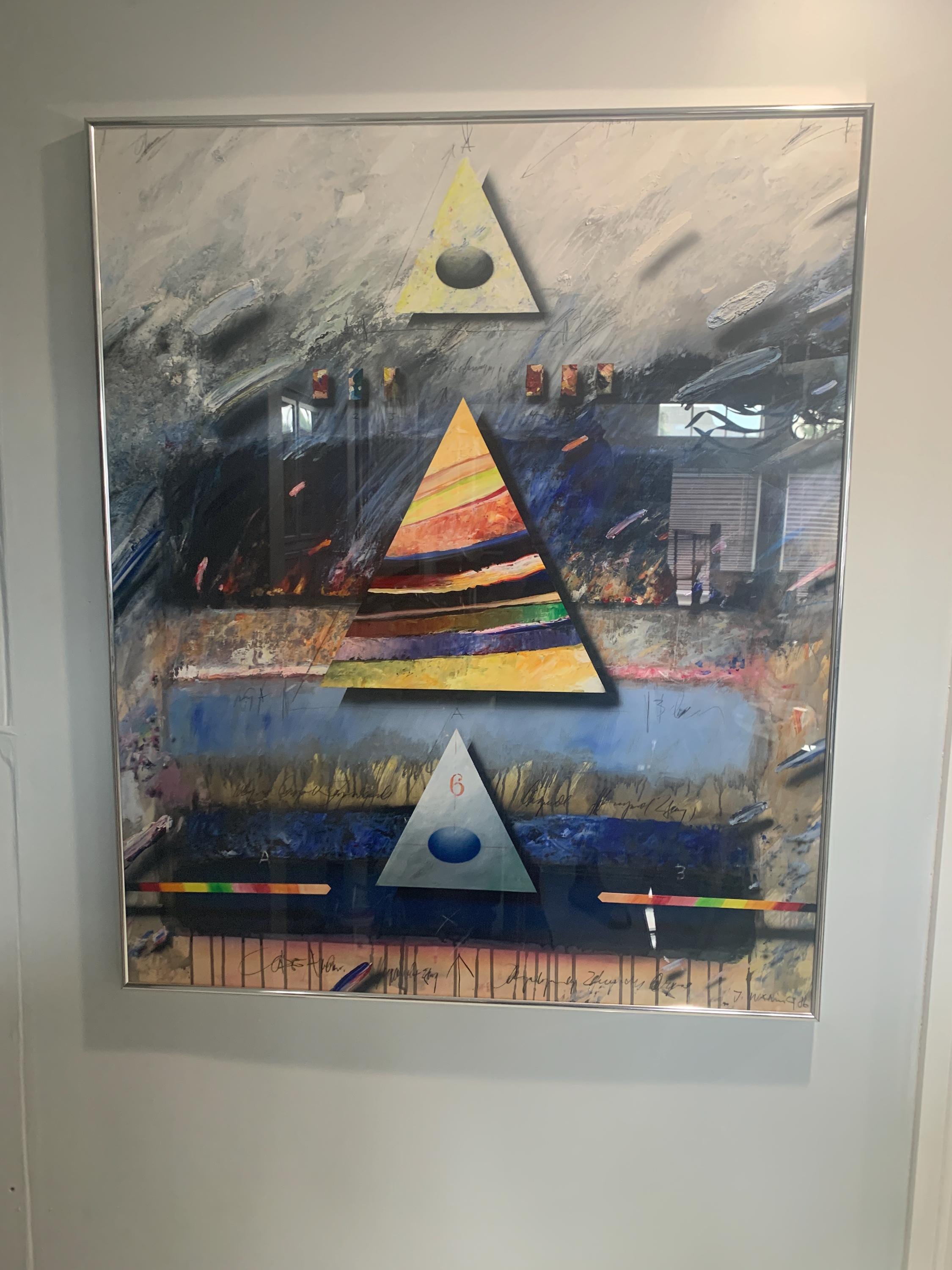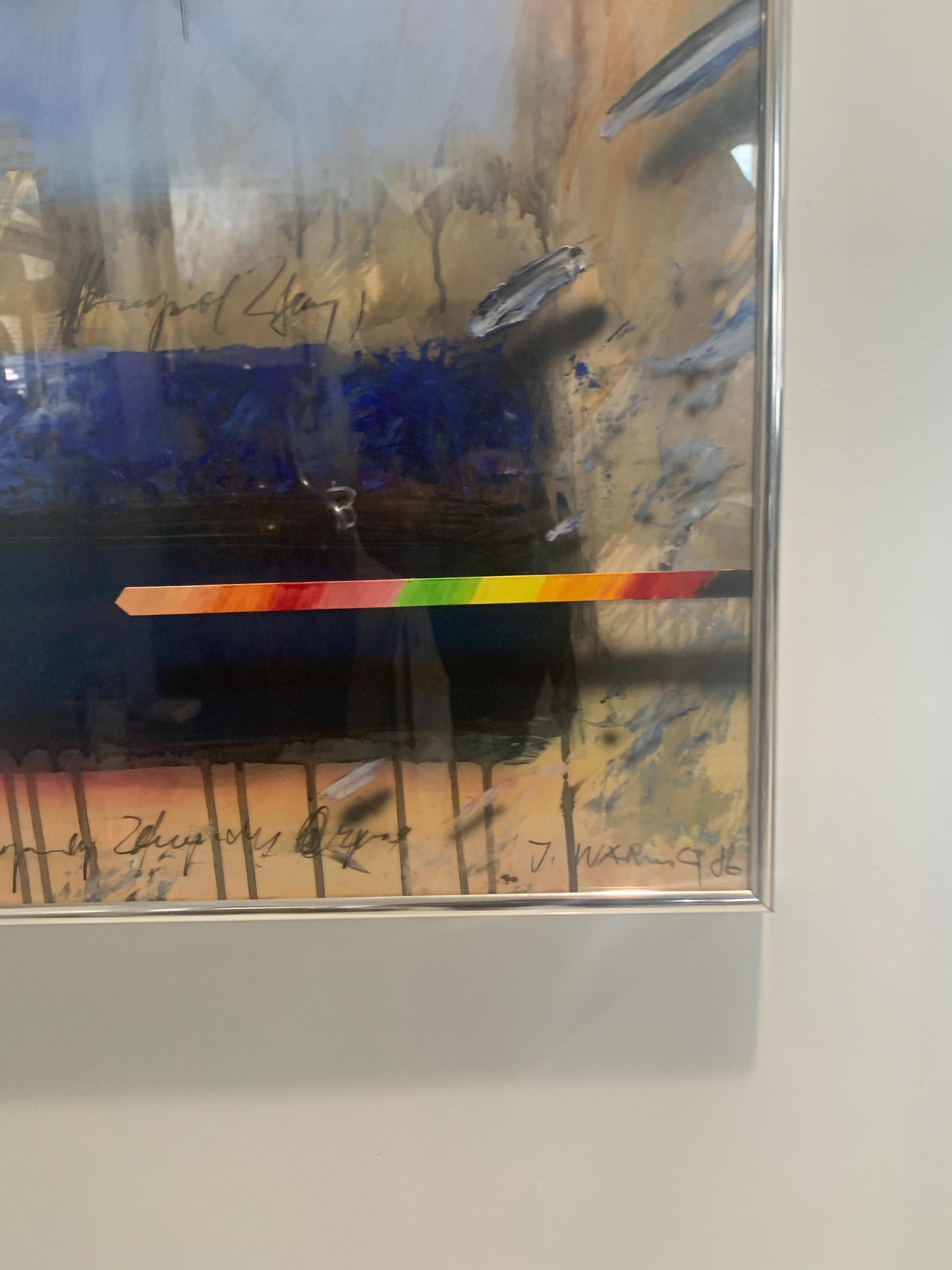 The Jørgen Waring oil on board mixed abstract painting from 1986 is a large original artwork created on cardboard. Known for his abstract style, Waring's artwork captures a theme of art through a unique production technique. This unique piece showcases Waring's artistic vision and creative use of mixed materials to create a dynamic and visually striking painting.