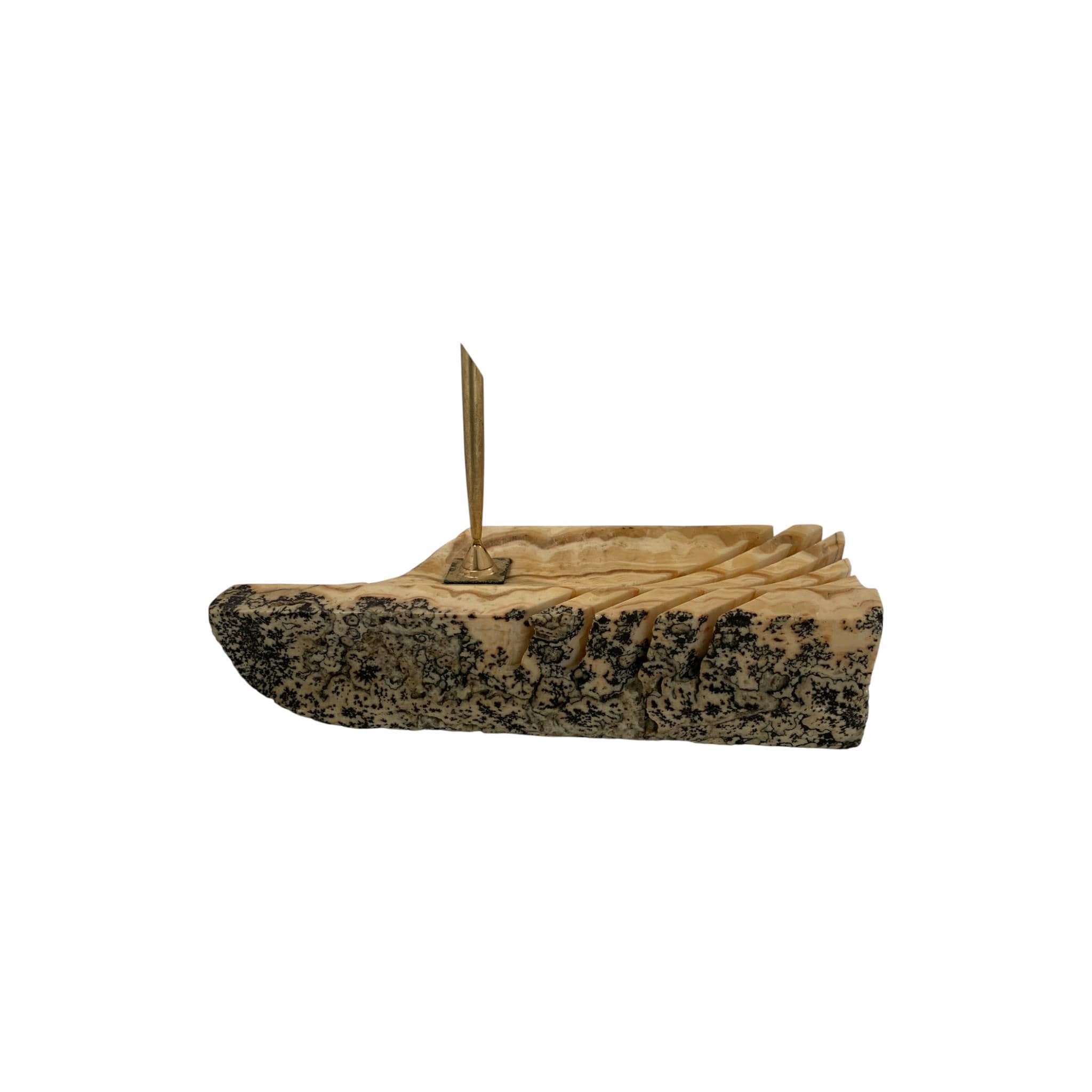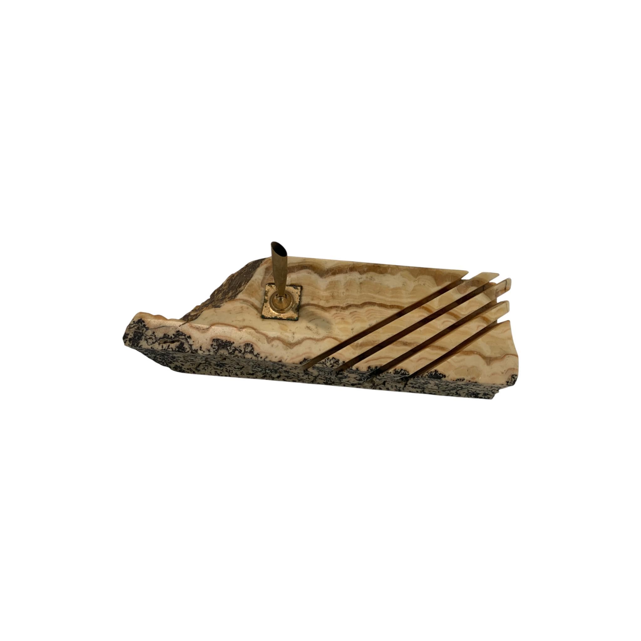 The Vintage Onyx paper and fountain pen holder is a unique and handmade collectible item originating from the United States. Crafted from onyx material, this vintage piece adds a touch of elegance and sophistication to any desktop. Perfect for storing writing instruments and paper, this holder is not only functional but also a stylish decor piece for collectors or enthusiasts of vintage items.