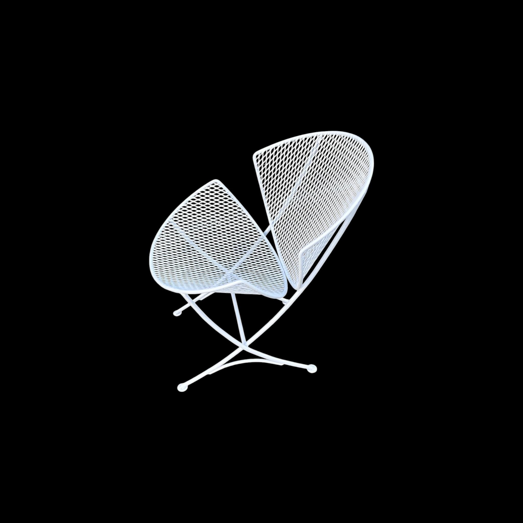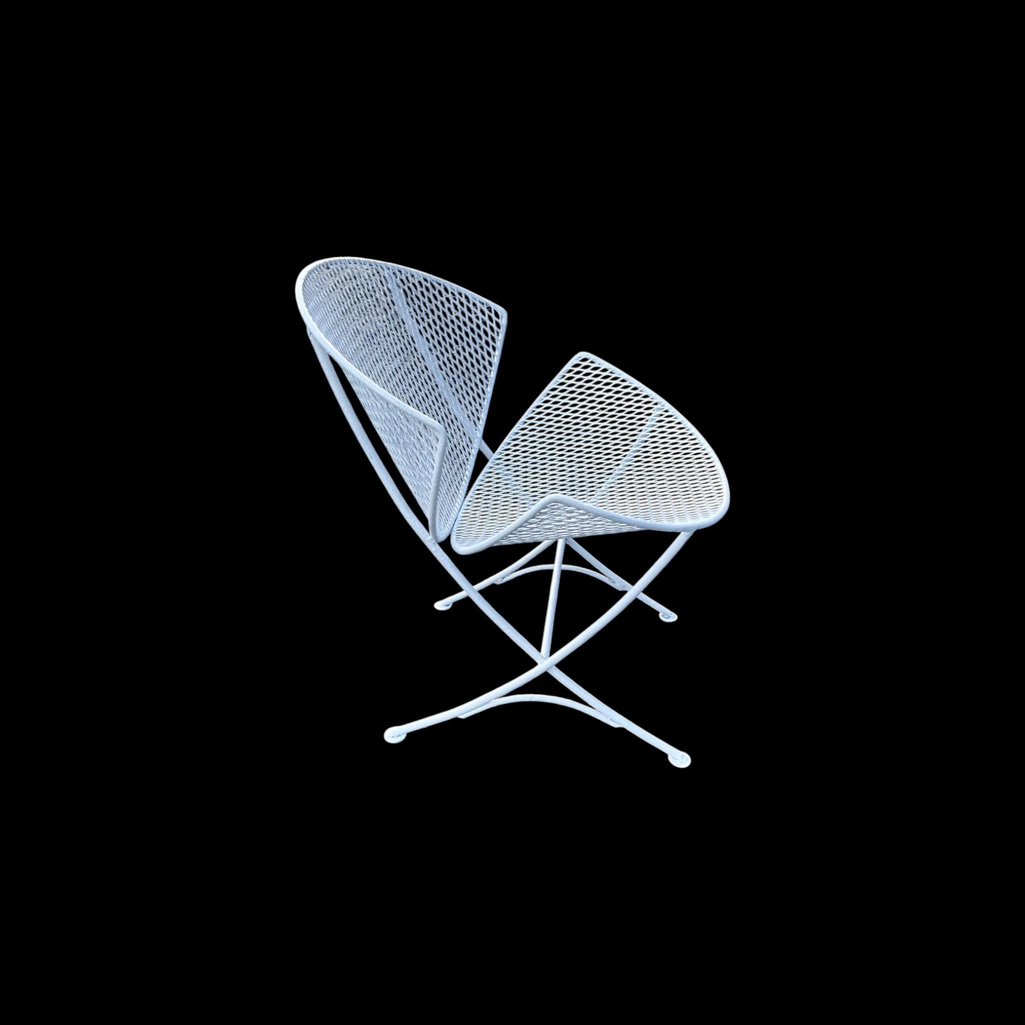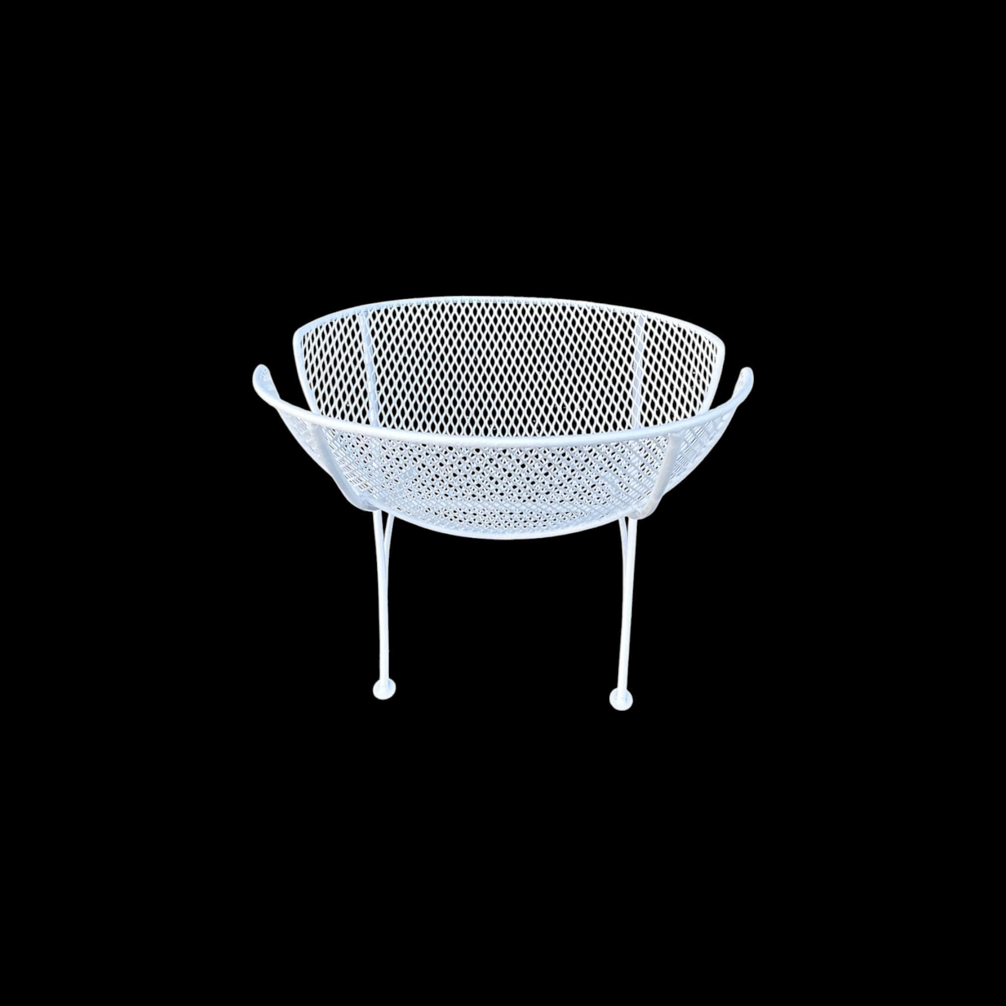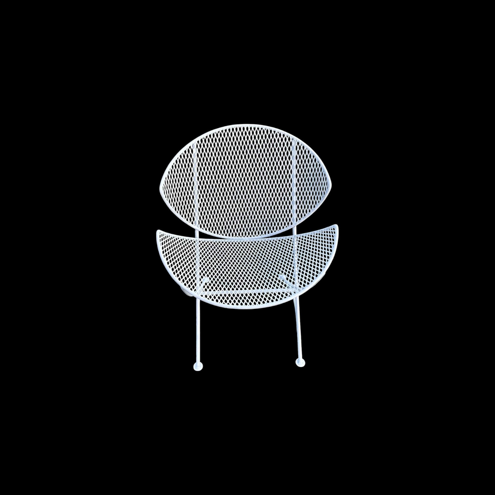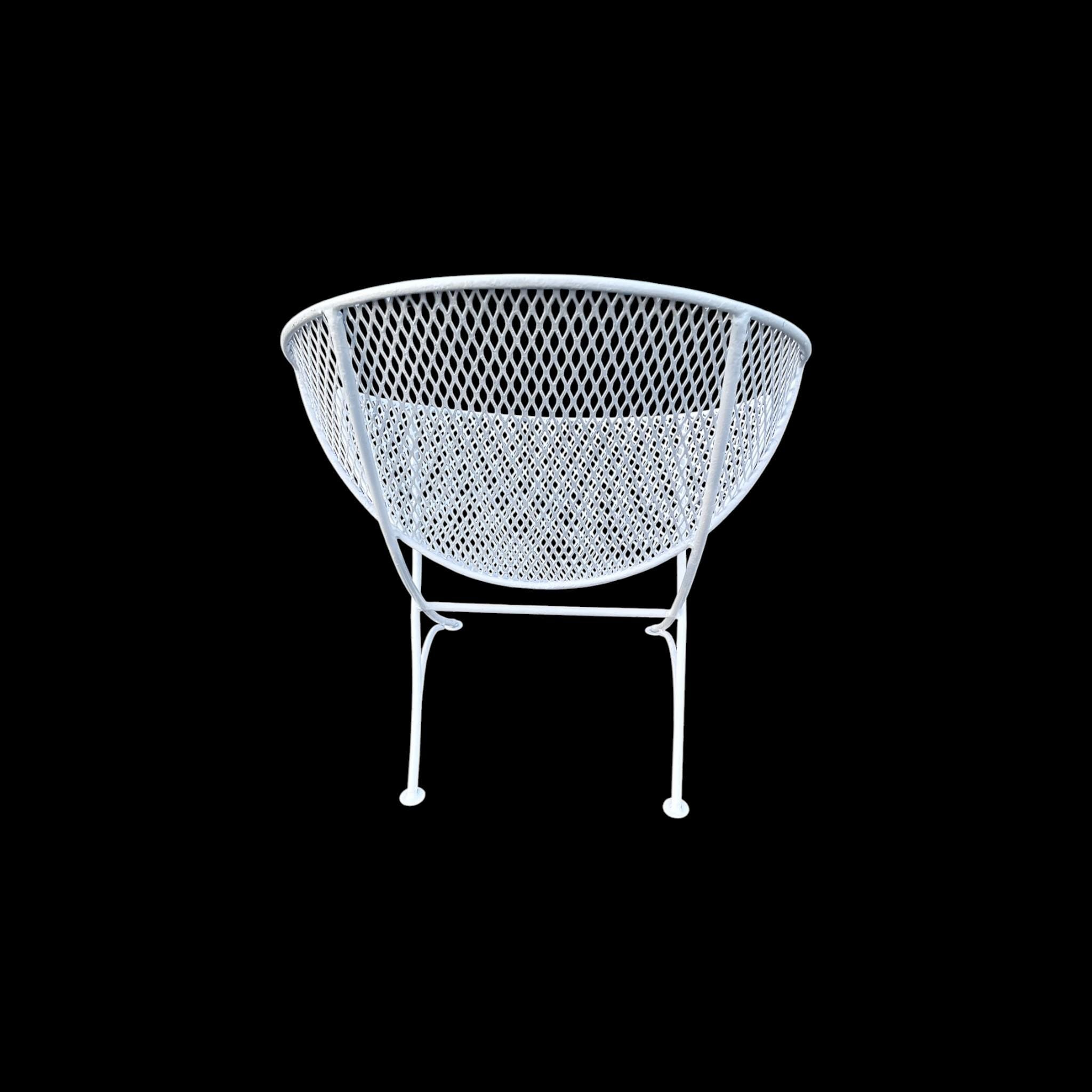.The Orange Slice Clam Shell Patio Chair by Maurizio Tempestini for Salterini in white is a stylish and original piece of outdoor furniture. This mid-century modern chair is made of wrought iron and features a unique clam shell design. With dimensions of 27.5" in height, 23" in width, and 17" in depth, it adds a touch of sophistication to any outdoor space. Perfect for adding a touch of vintage charm to your patio or garden.