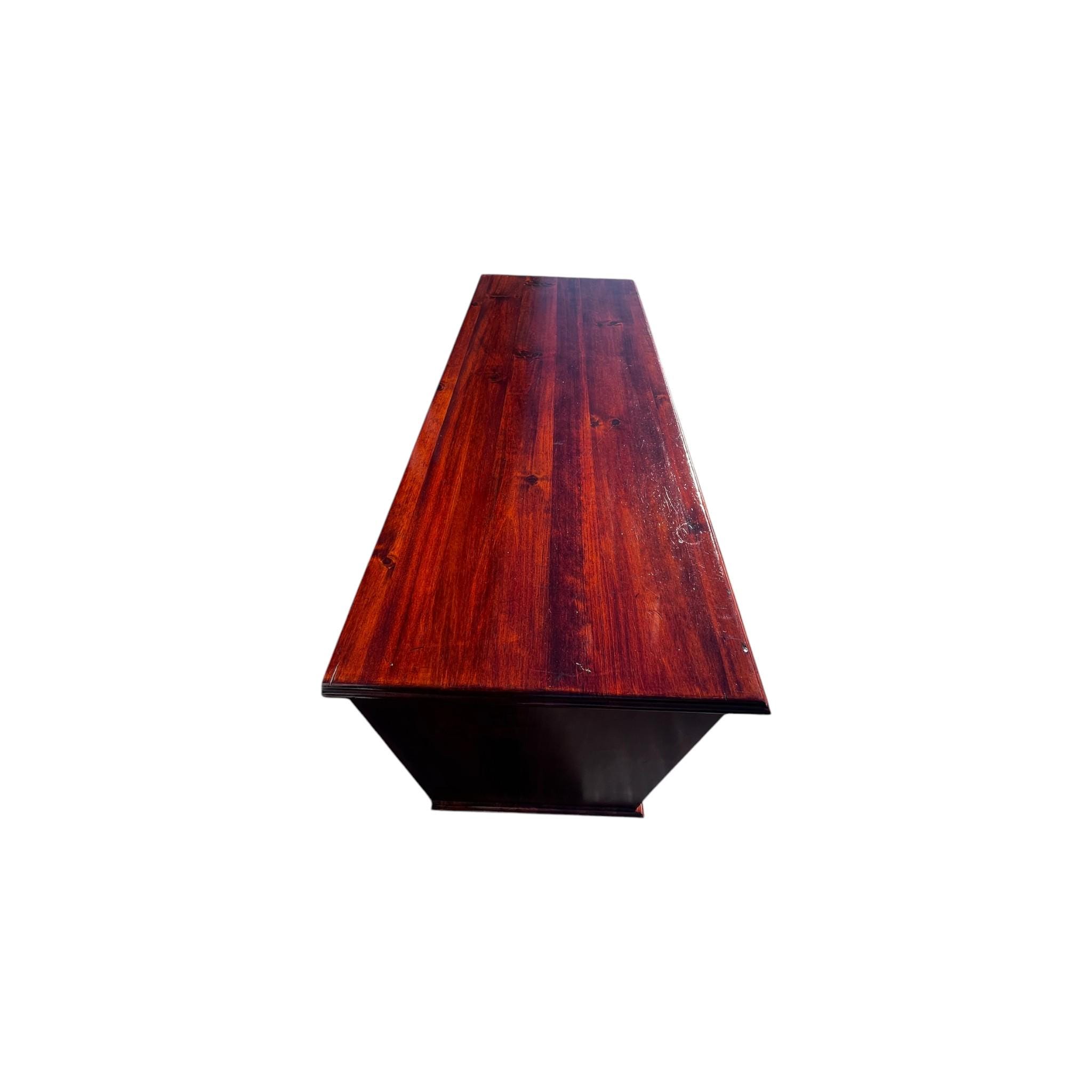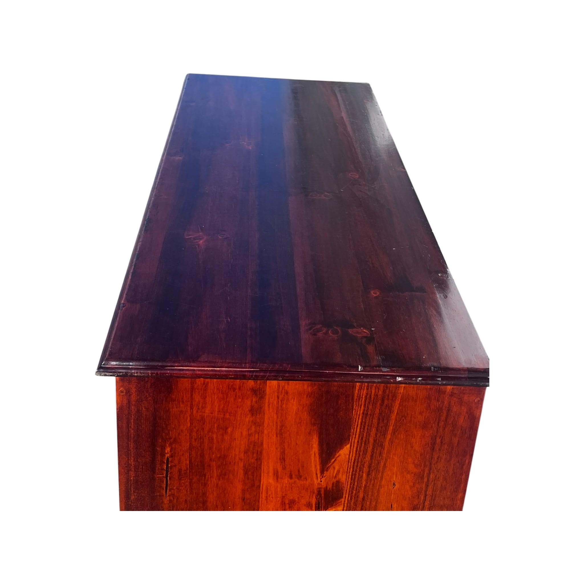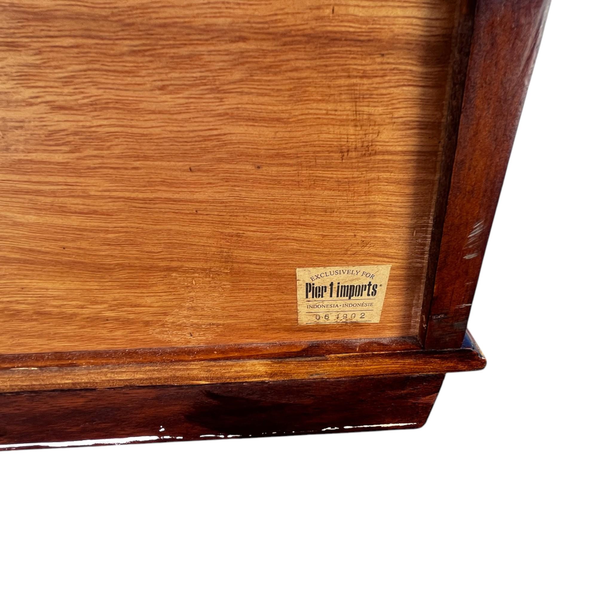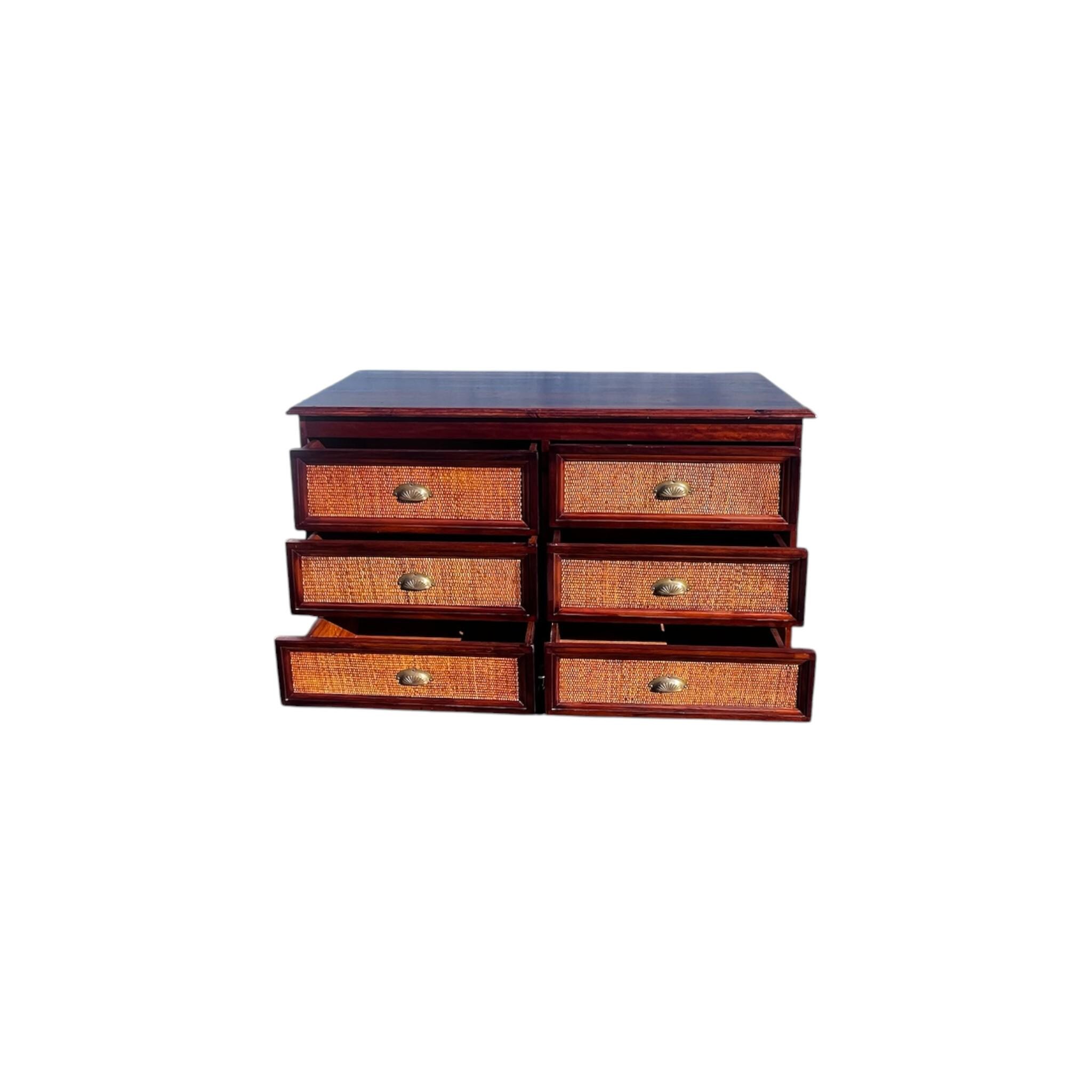 The Pier 1 imports Pyramid collection wicker and wood 6 drawer dresser is a stylish and functional piece of furniture for a bedroom. With a metal handle finish and a rectangular shape, this dresser stands out with its brown color and original design. The dresser is 21 inches long, 33 inches high, and 57 inches wide, providing ample storage space with its six drawers. It is a free-standing unit that requires no additional parts for assembly, making it easy to bring into any room. Whether you are looking to update your bedroom or add a touch of elegance to your home, this dresser from Pier 1 imports is a great choice.