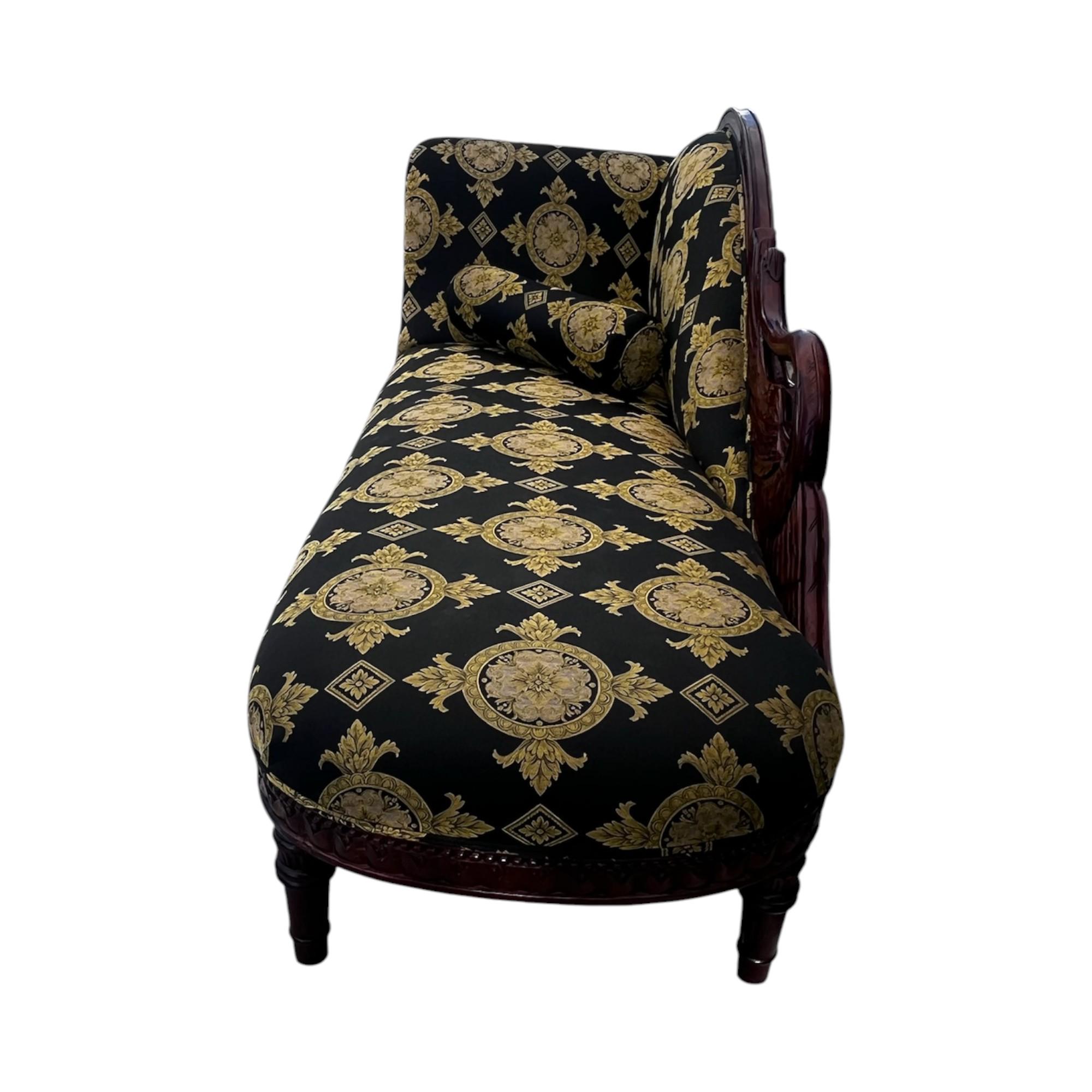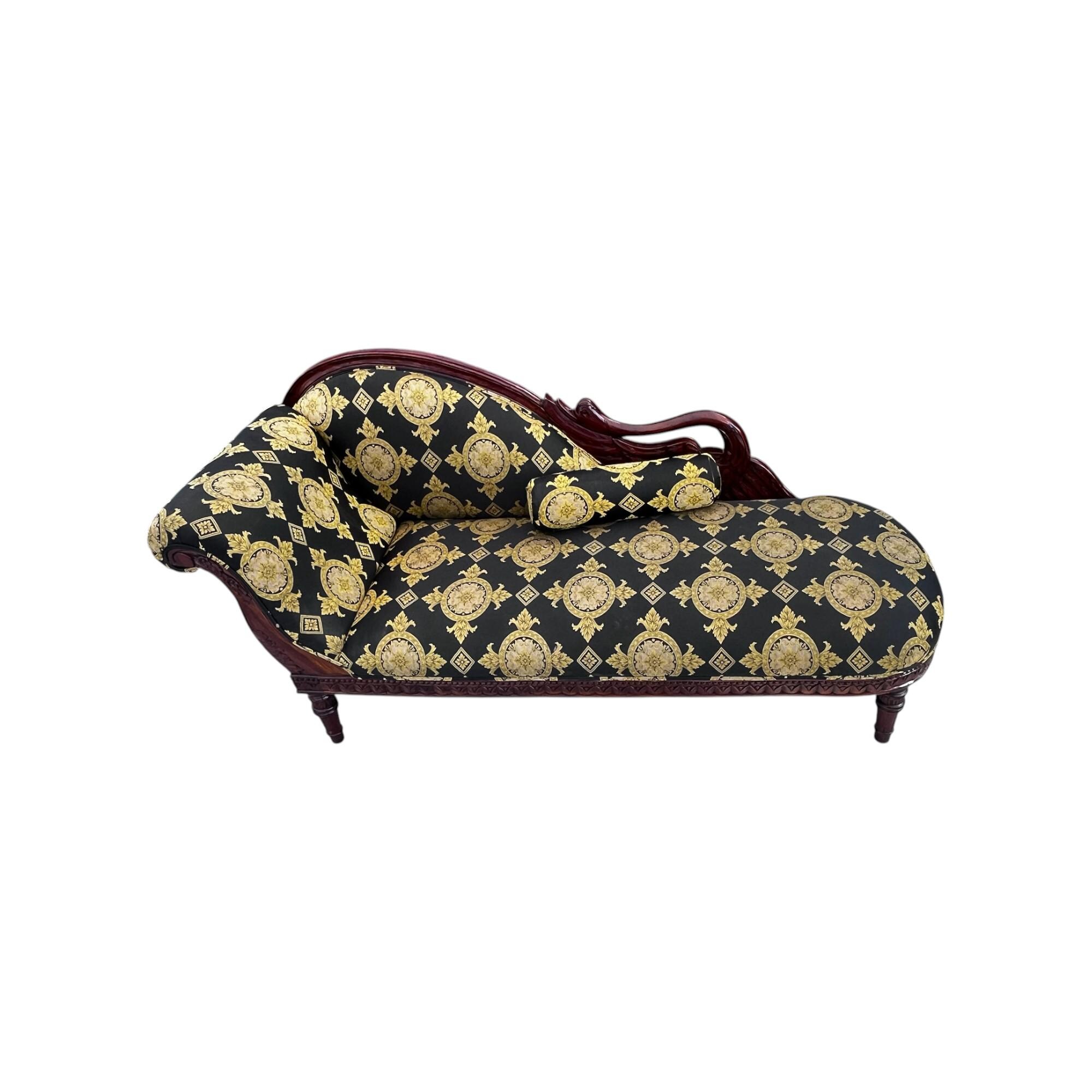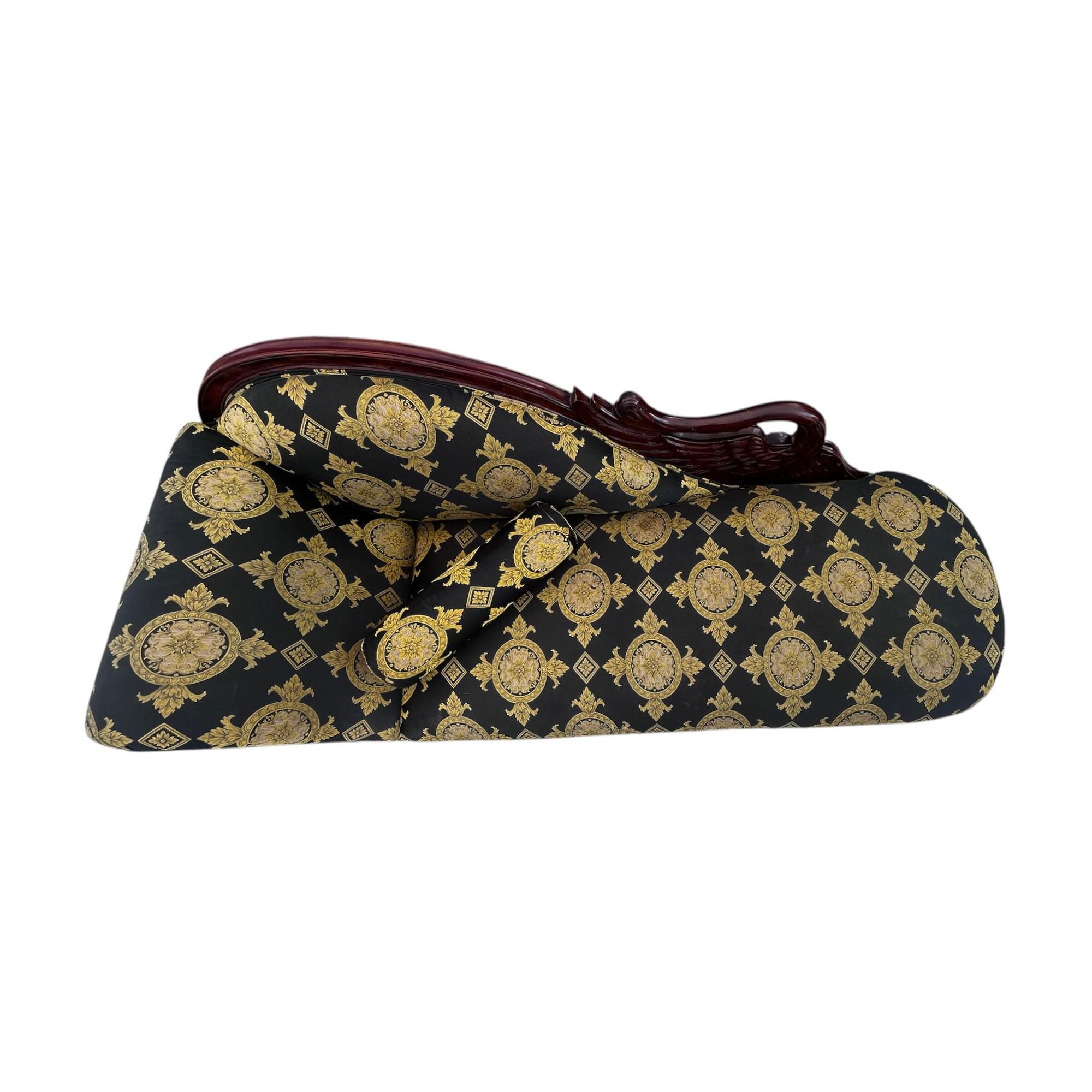 The mid-20th-century Empire Revival Swan Chaise Lounge is a stunning piece of antique furniture with intricate carved detailing. Made of wood, this fully assembled chaise lounge features a beautiful blue color and exquisite carvings that add a touch of elegance to any room. With a height of 37 inches and a length of 24 inches, this lounge is perfect for relaxing in style and comfort. The unique swan design and Empire revival style make it a standout piece for any antique collector or furniture enthusiast.