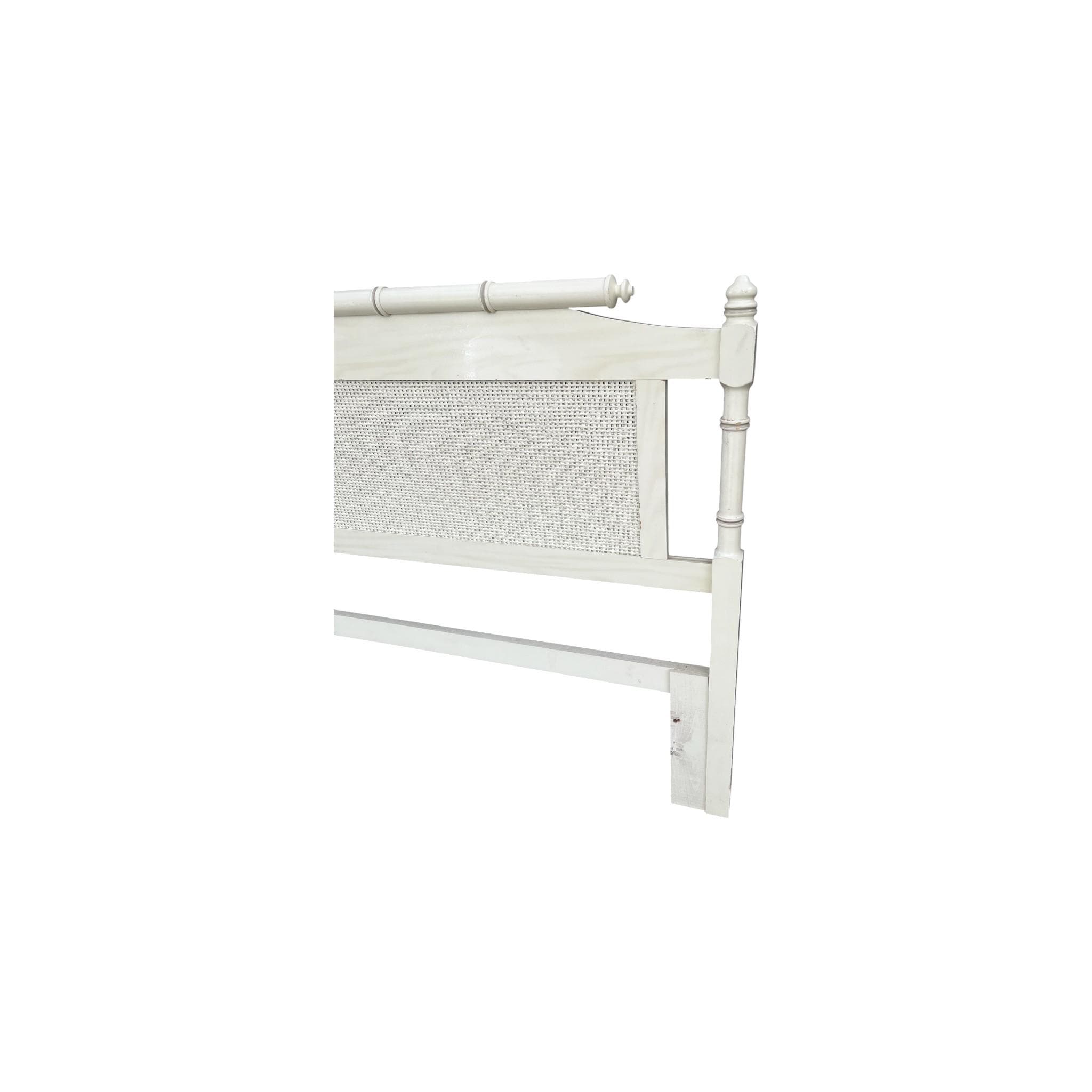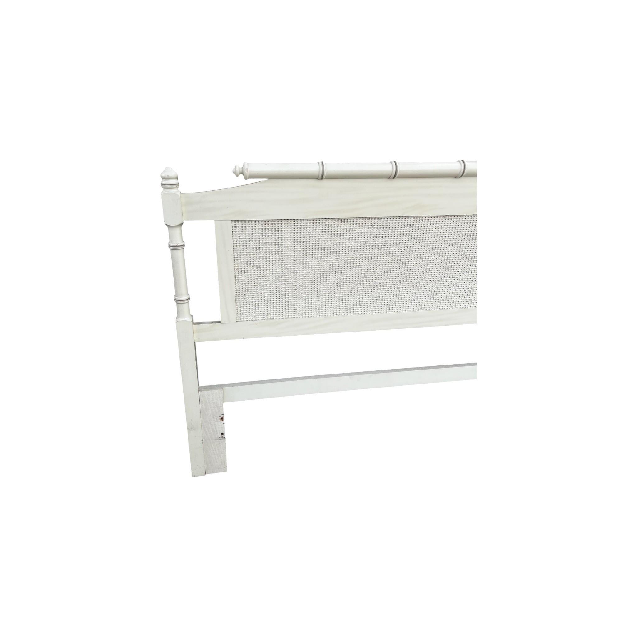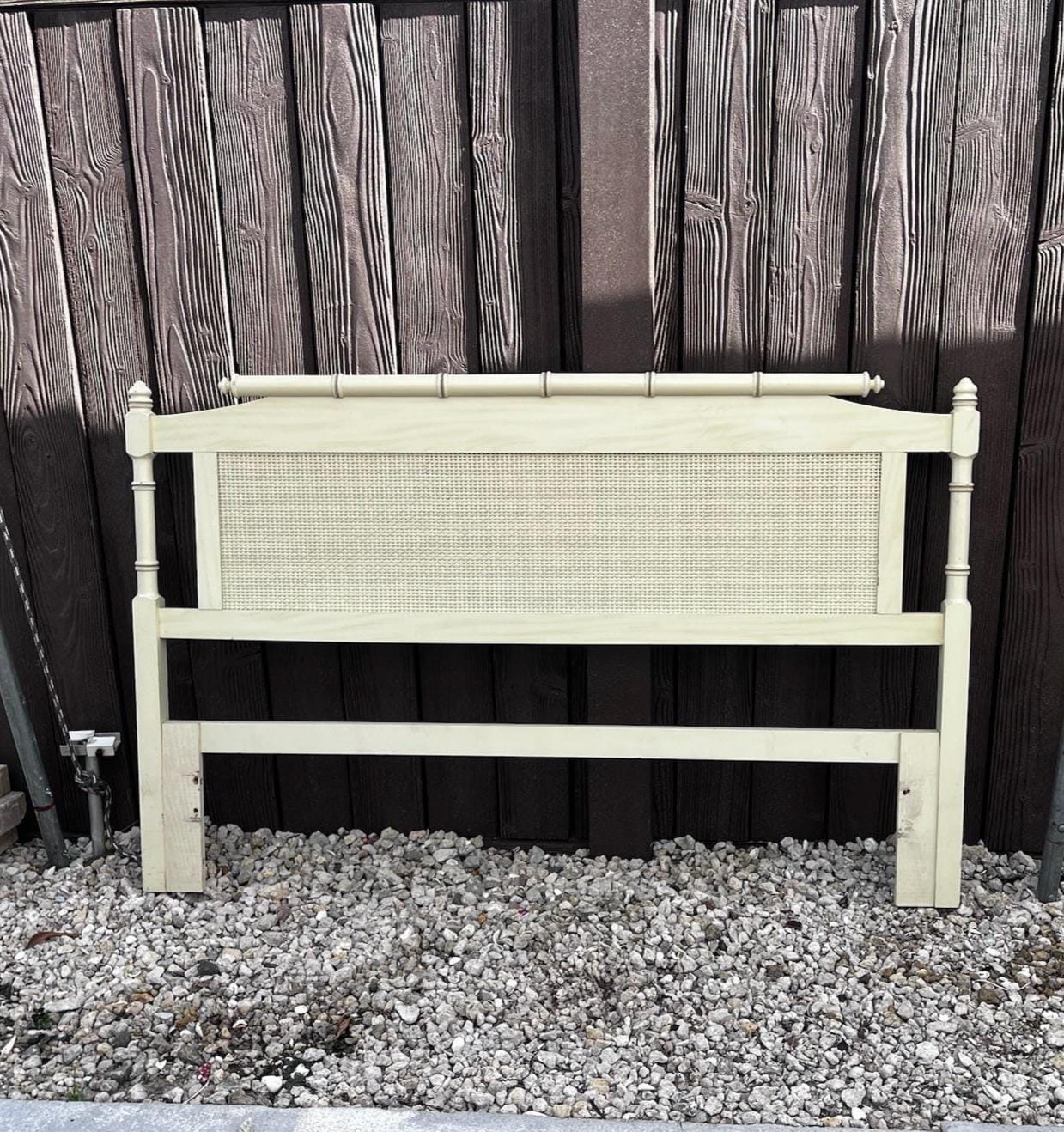 This listing is for a low queen size headboard. Faux bamboo structure and design, central panel covered with cane. original ivory color.