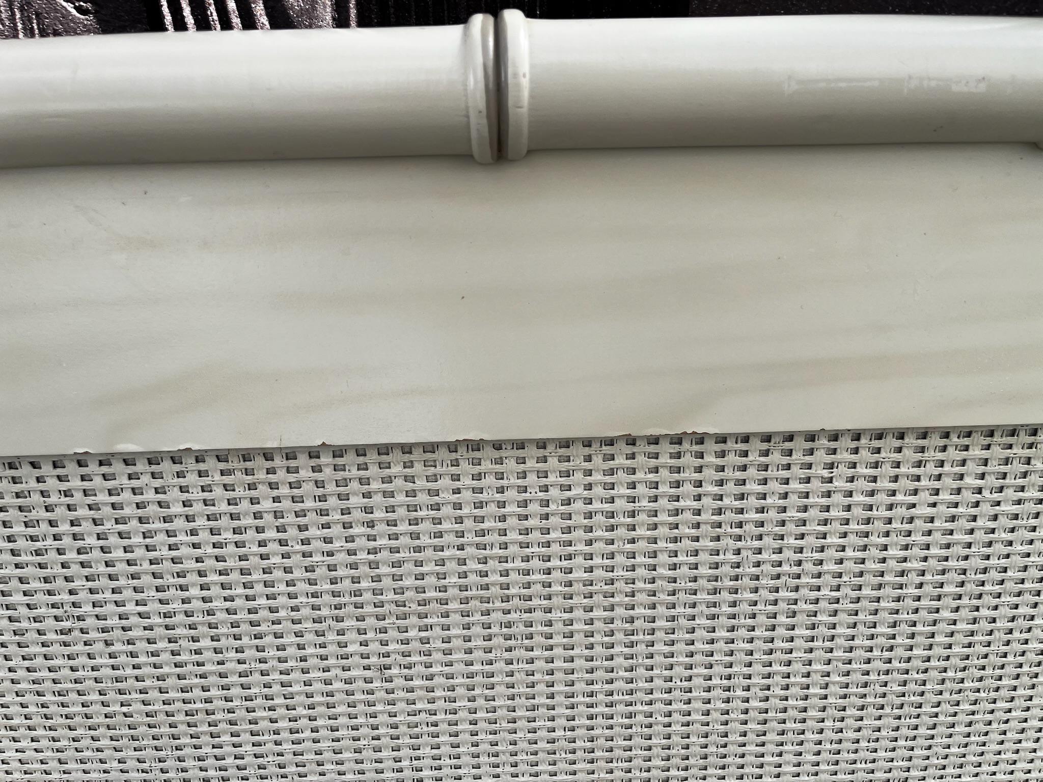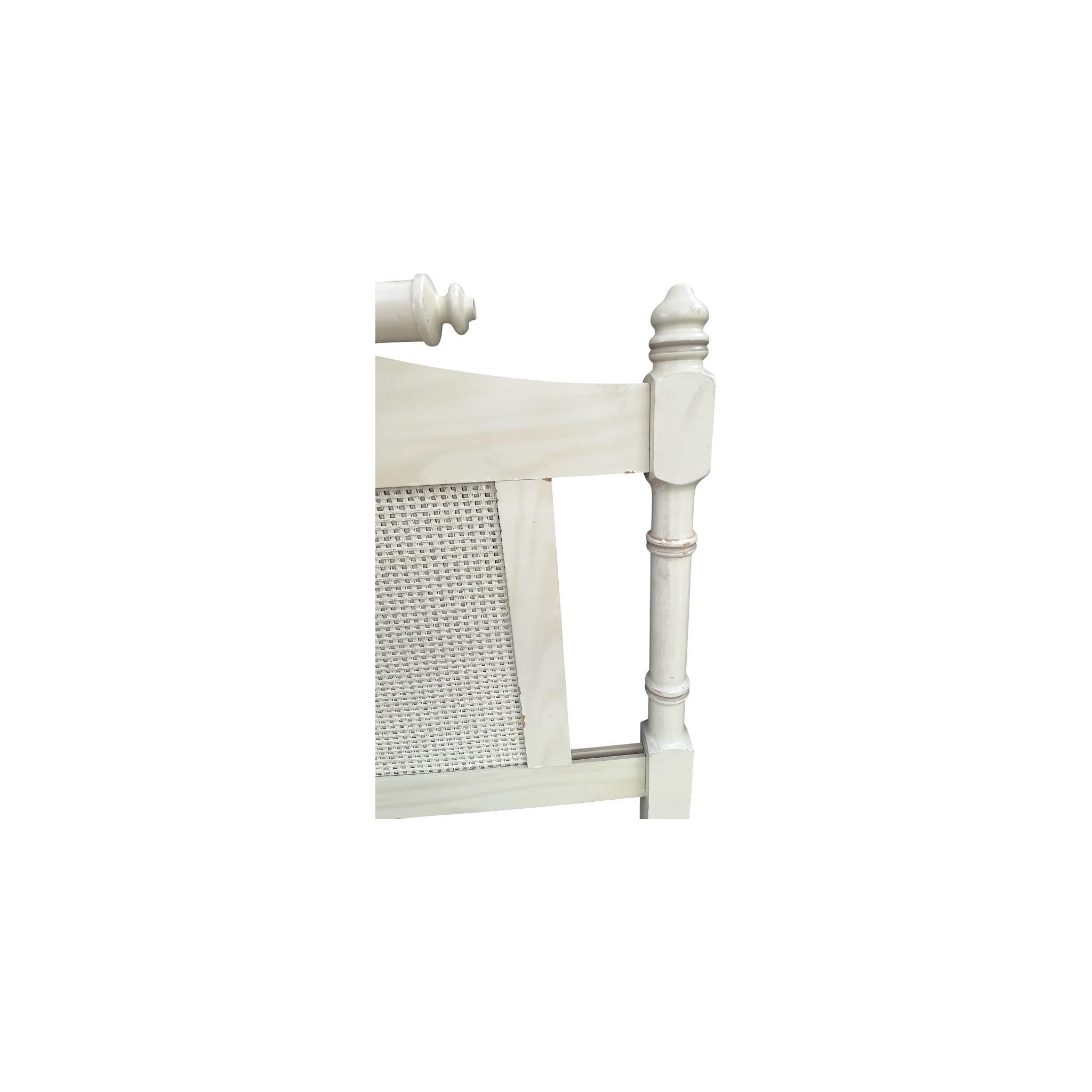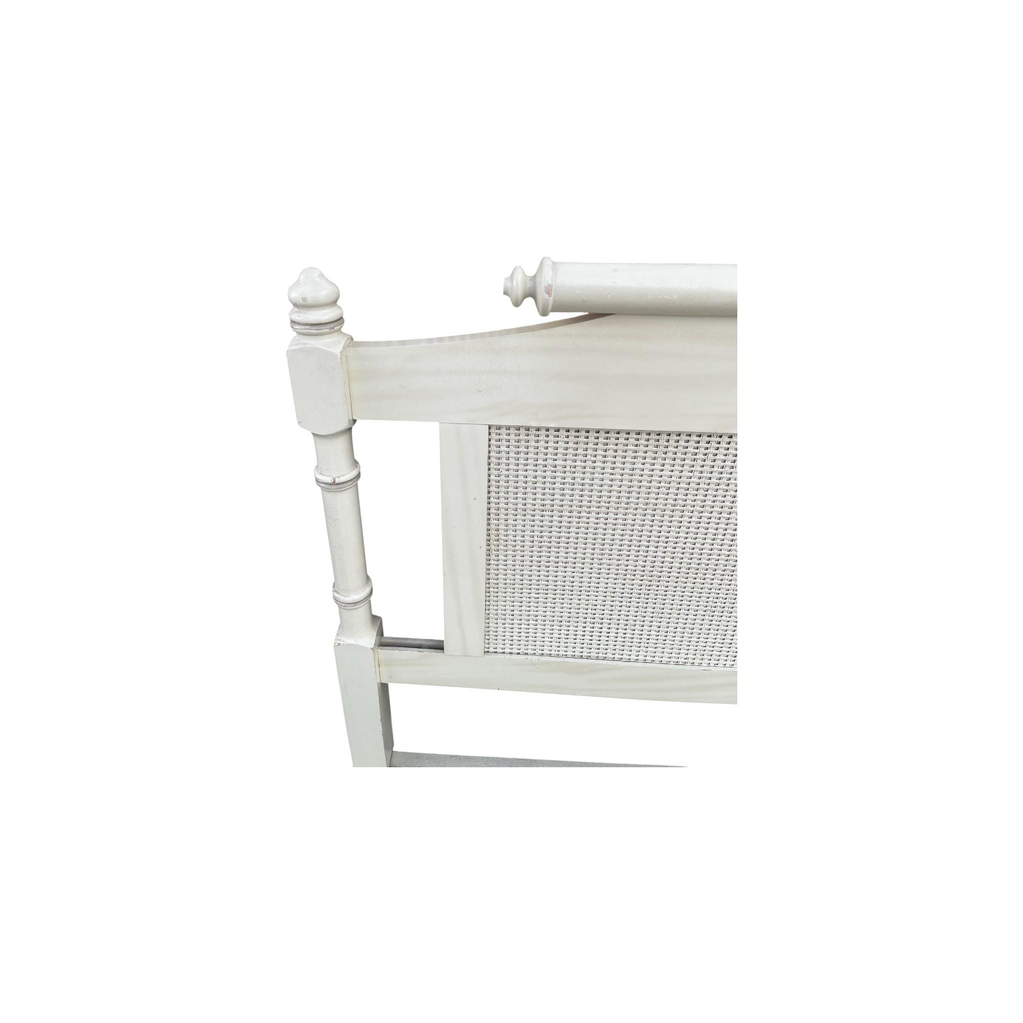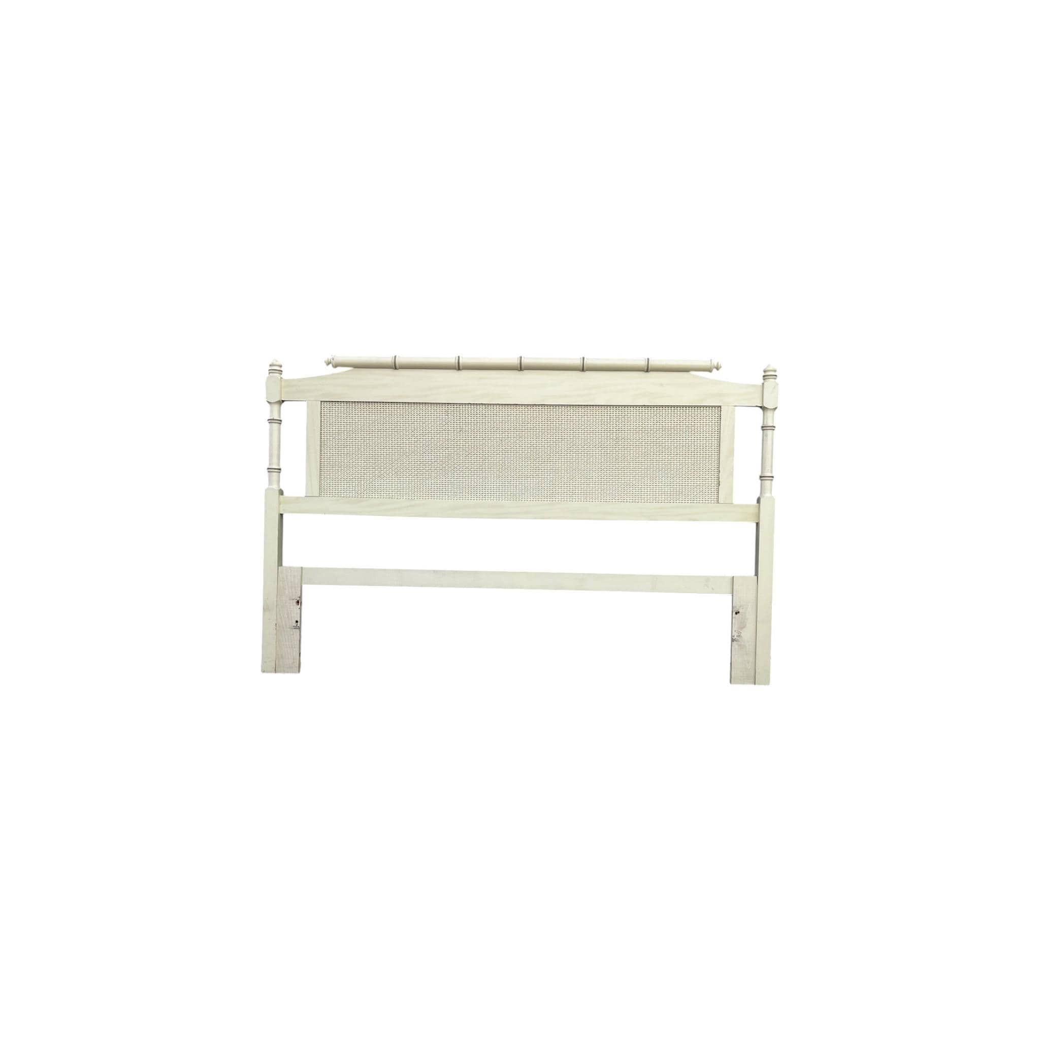 This listing is for a low queen size headboard. Faux bamboo structure and design, central panel covered with cane. original ivory color.