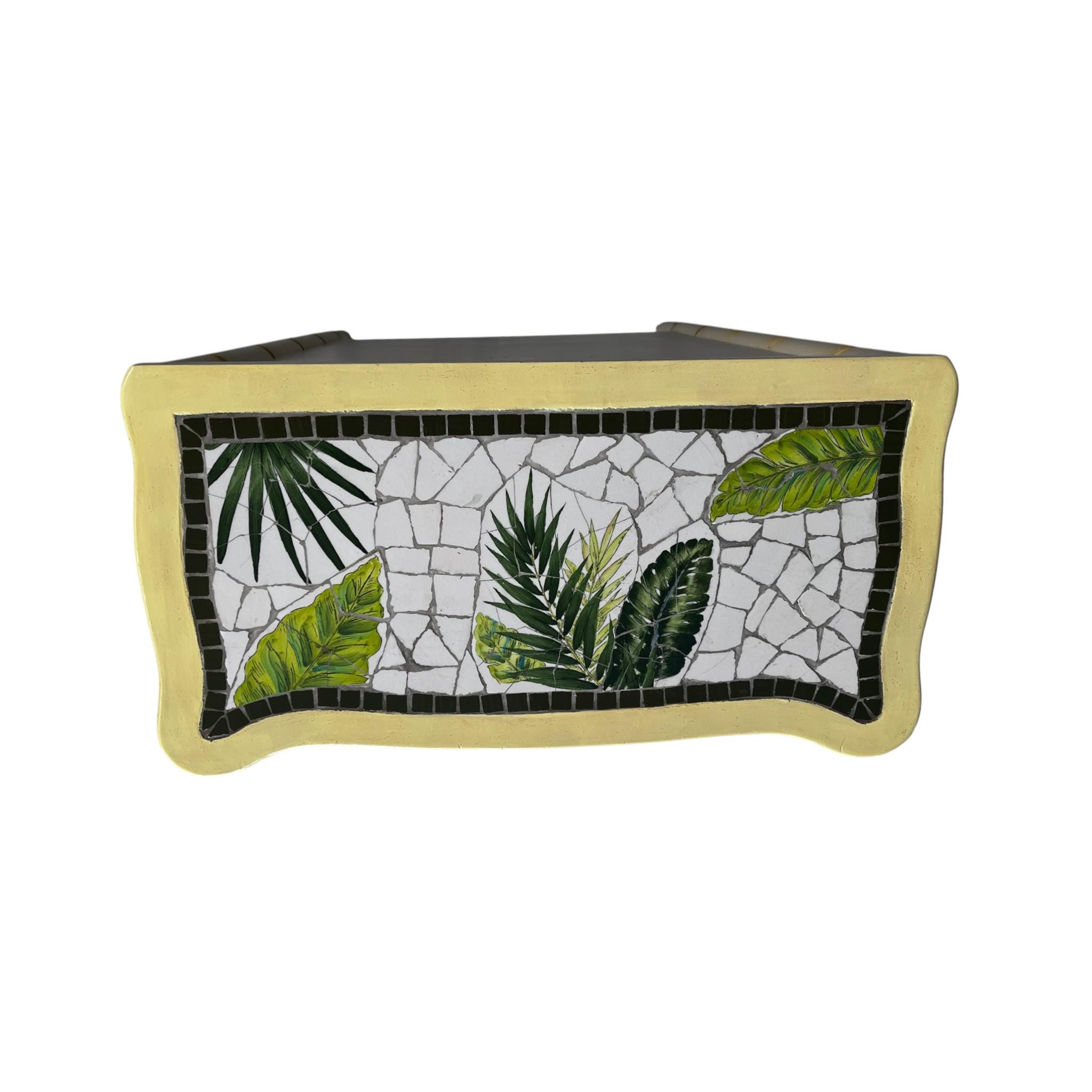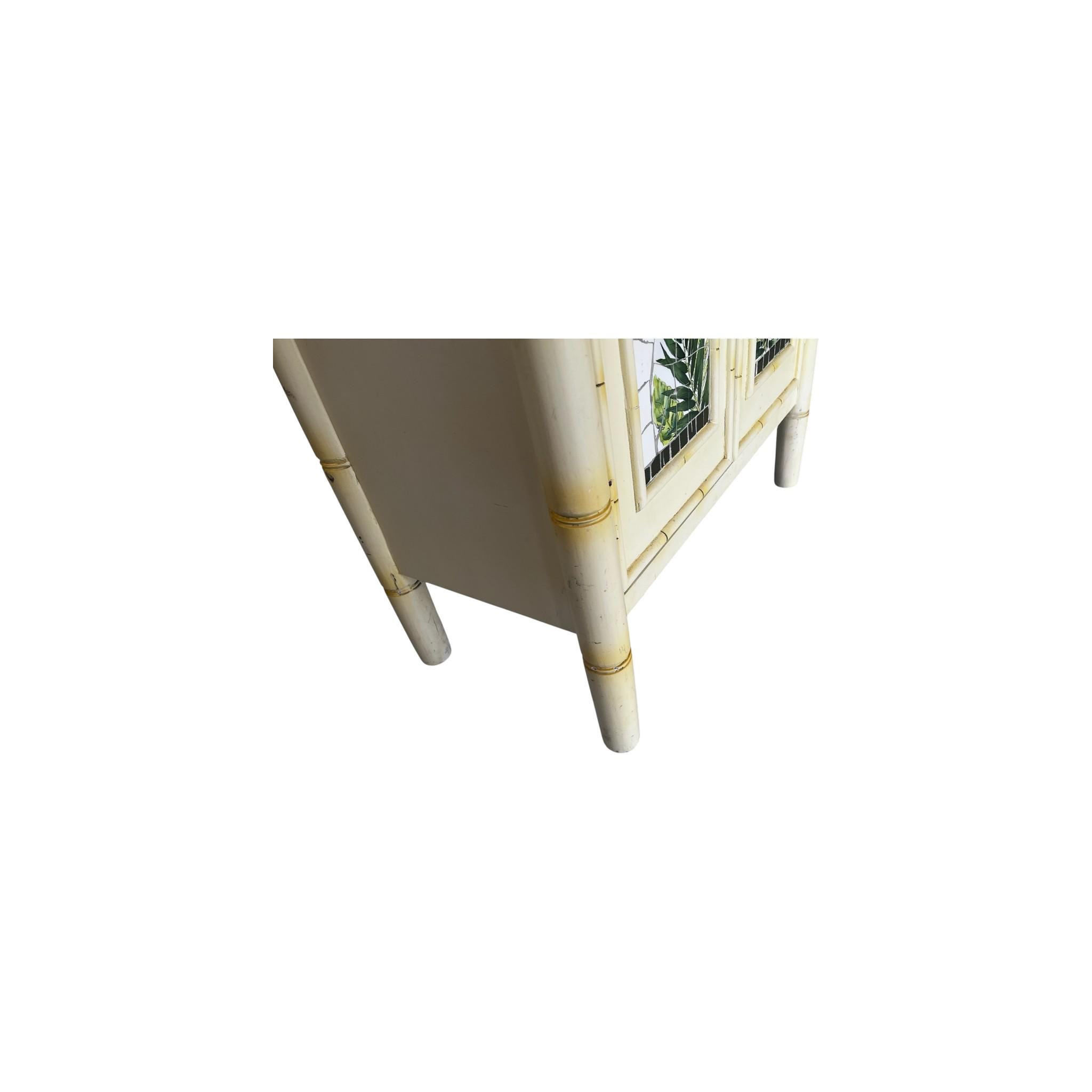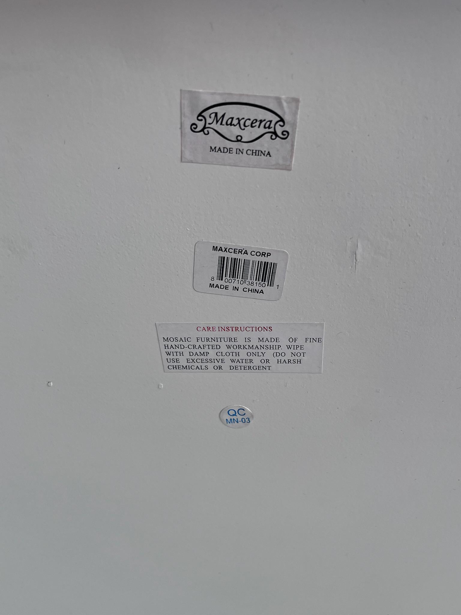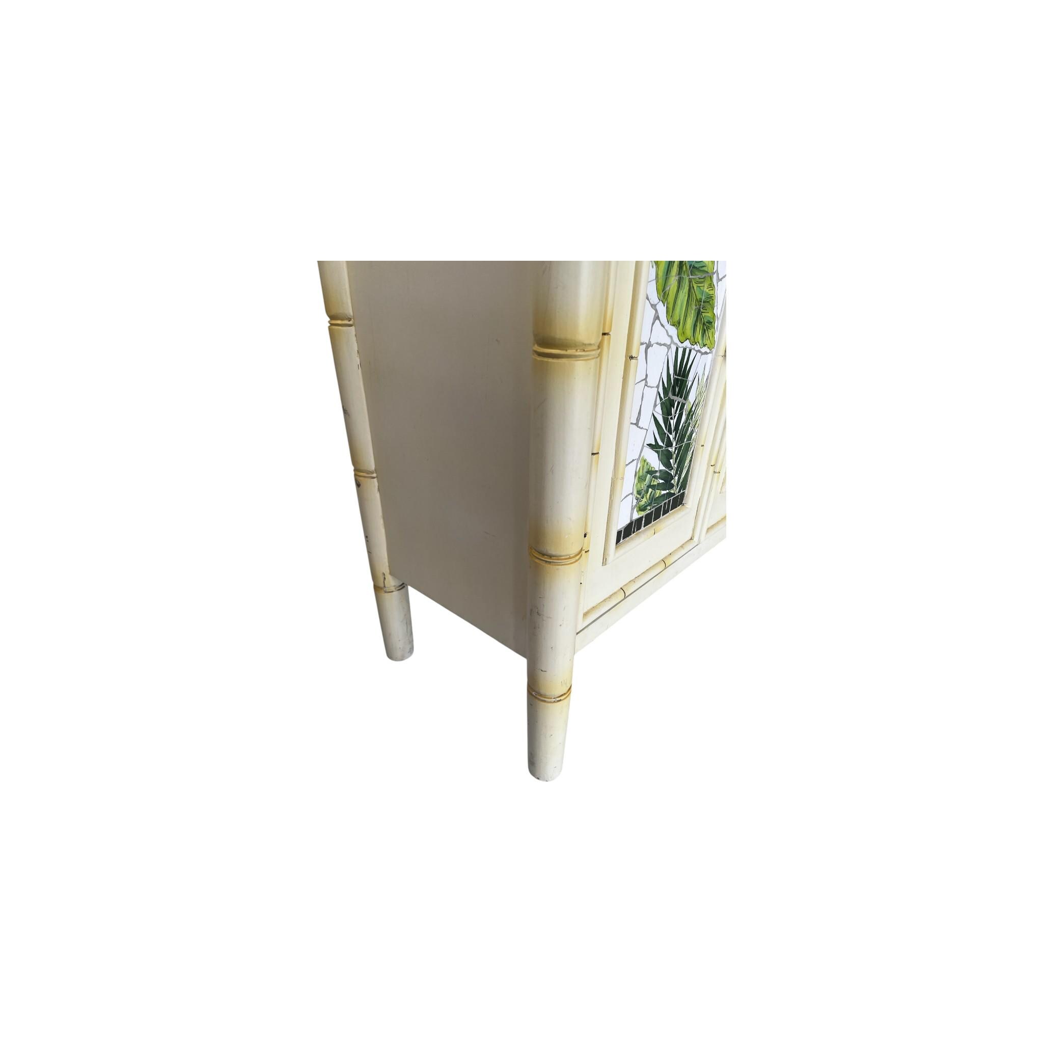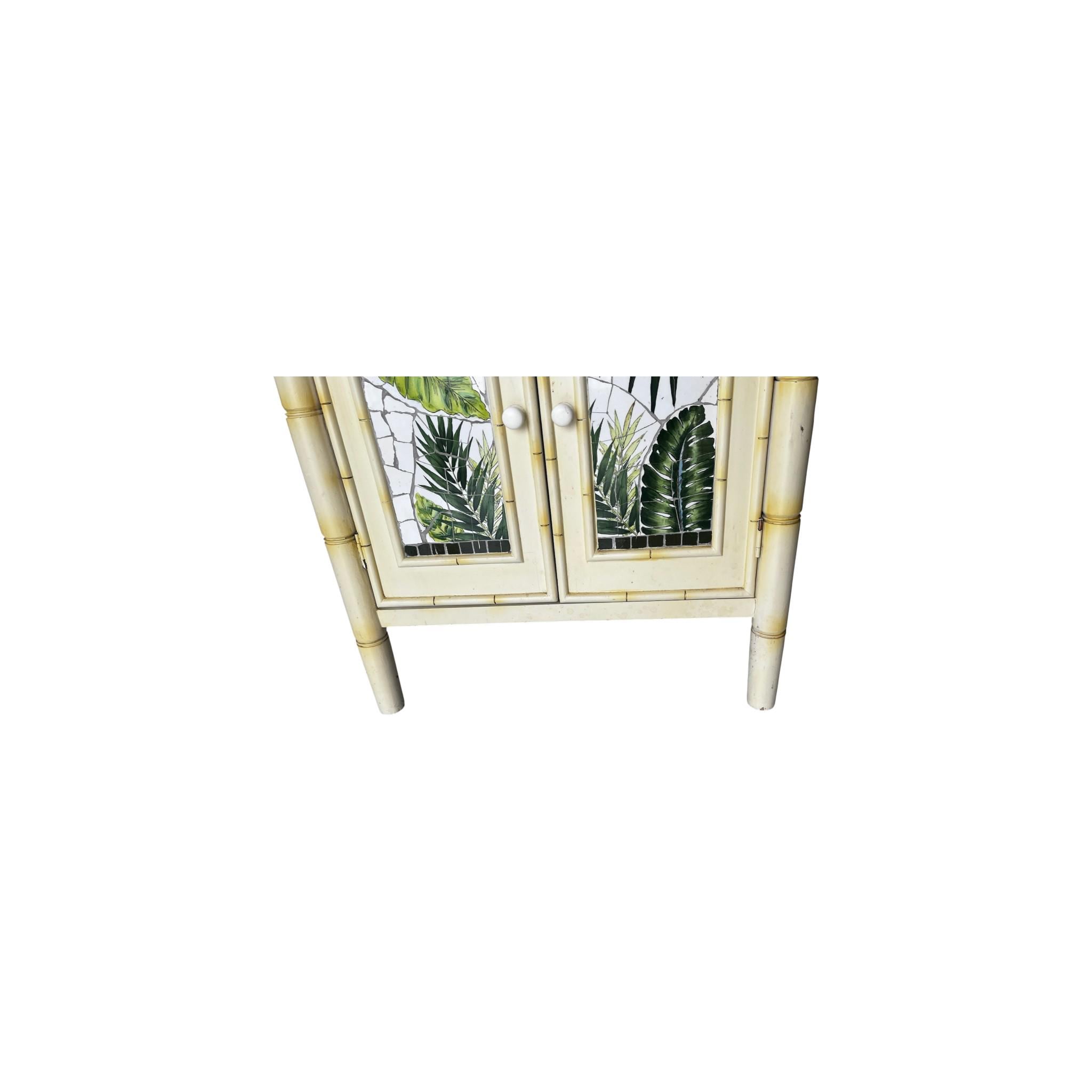 The Faux bamboo Cracked ceramic tile foyer cabinet by Maxcera is a stylish and elegant addition to any home. This free-standing cabinet features a tropical design with a unique cracked ceramic tile accent. With one shelf and one drawer, this cabinet provides functional storage while adding a touch of sophistication to any space. The cabinet stands at 35 inches tall, 14 inches long, and 26 inches wide, making it a versatile piece for any home or garden setting.