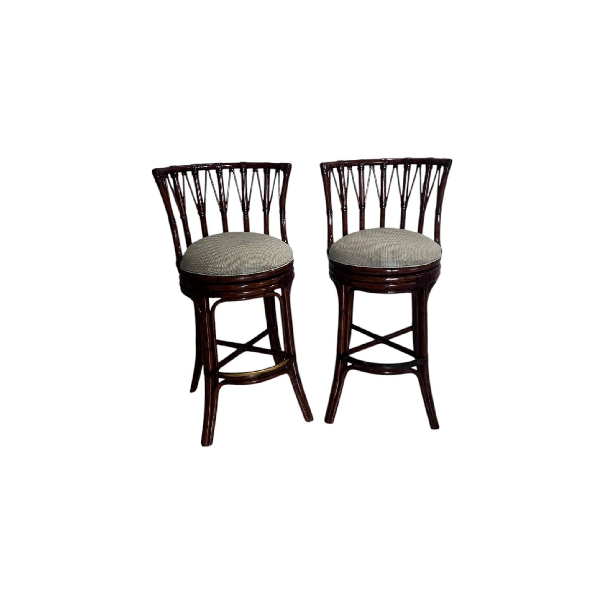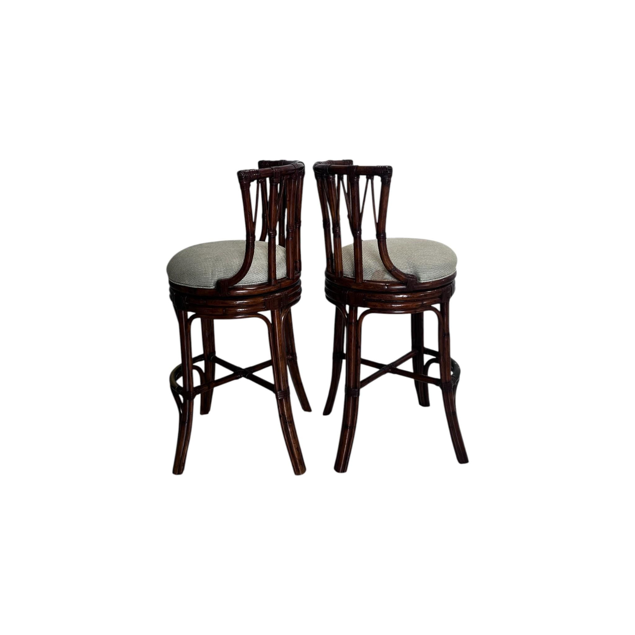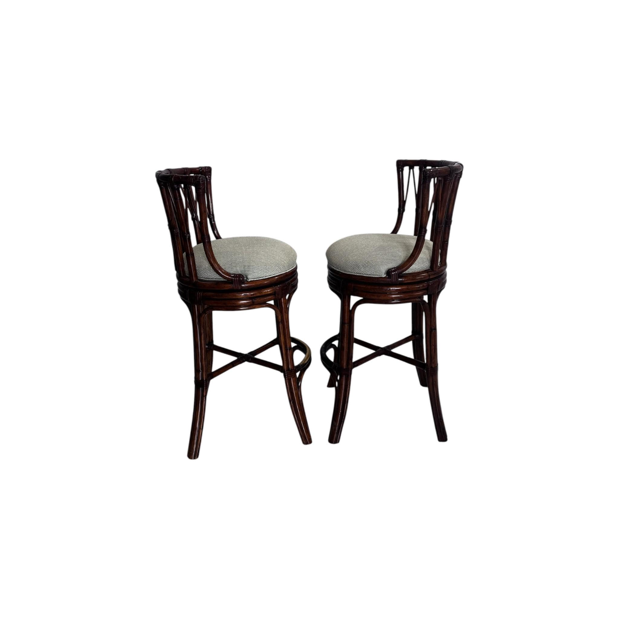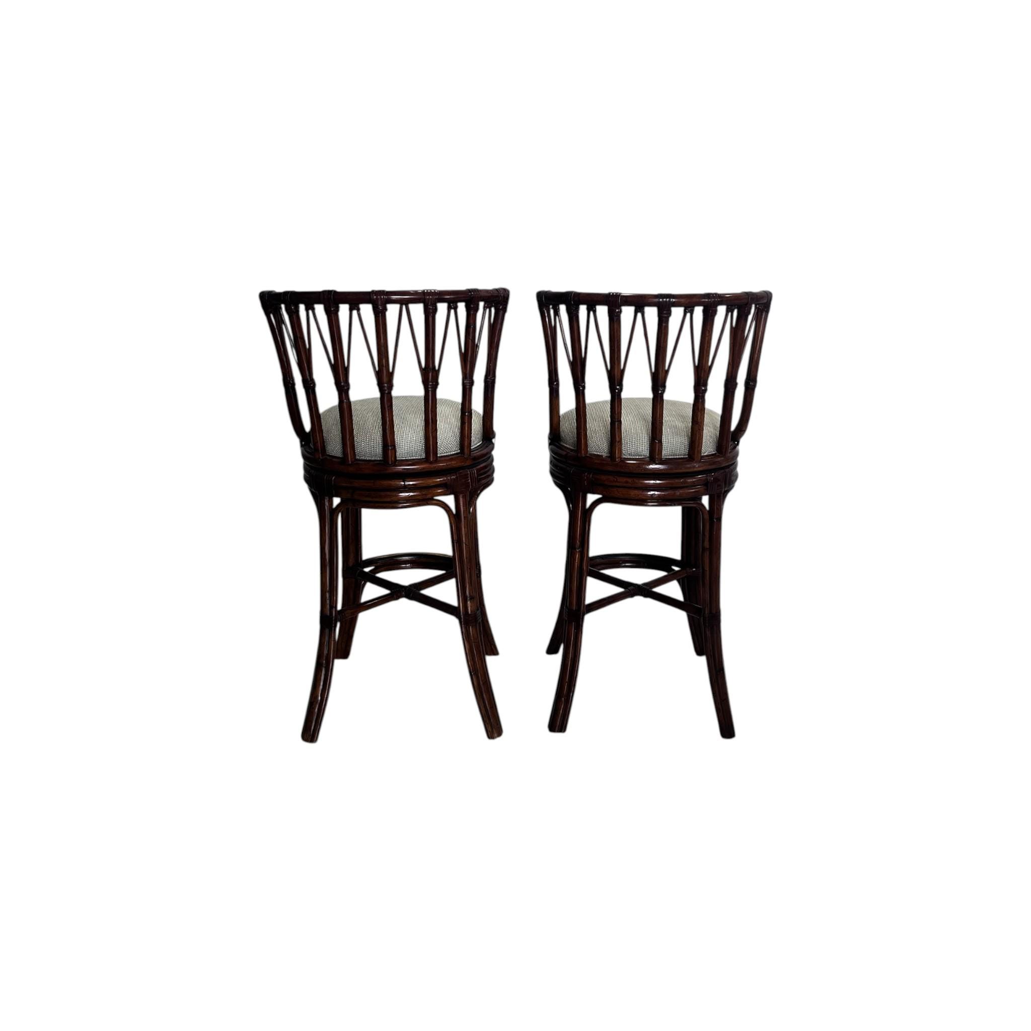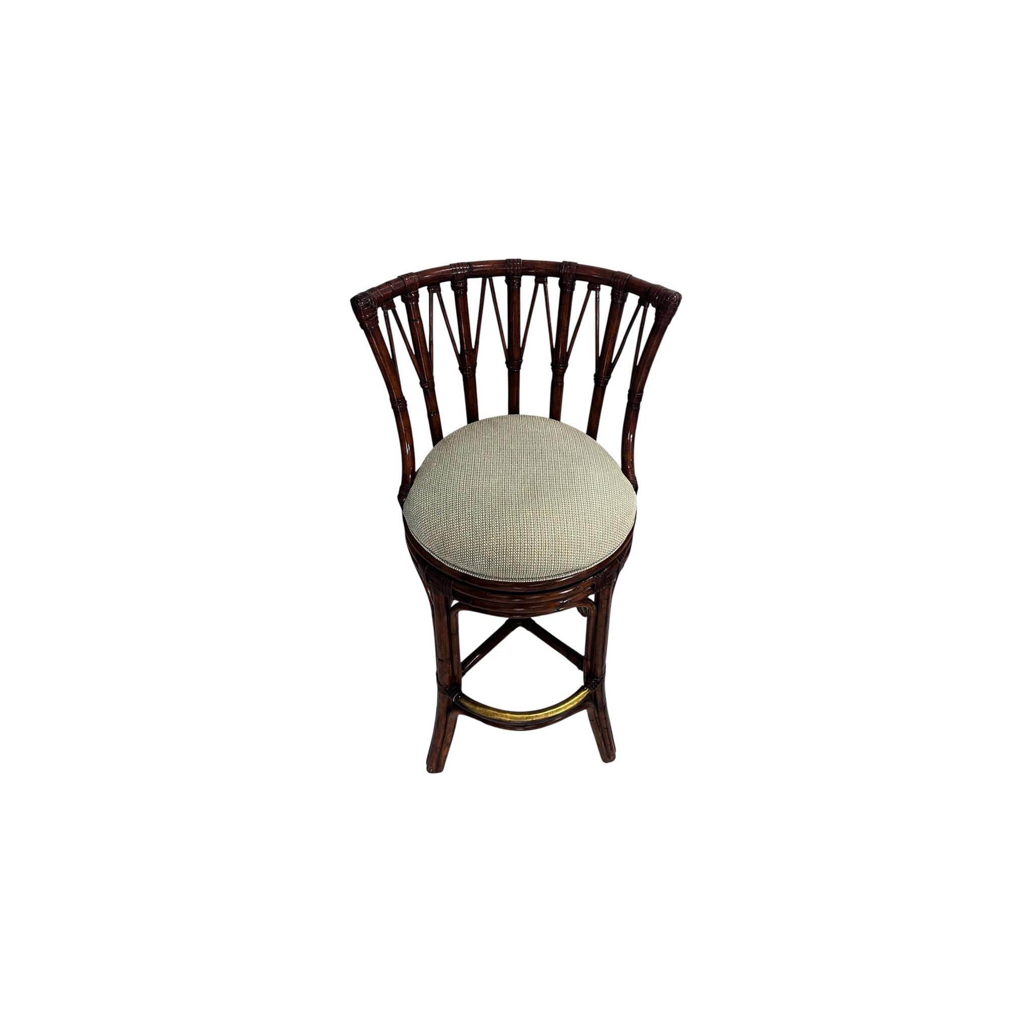 Featuring a leather-wrapped rattan frame, this bar stool is a rich blend of natural materials and textures. The upholstered swivel seat will provide hours of comfort for the enjoyment of conversations and companionship with family and friends.