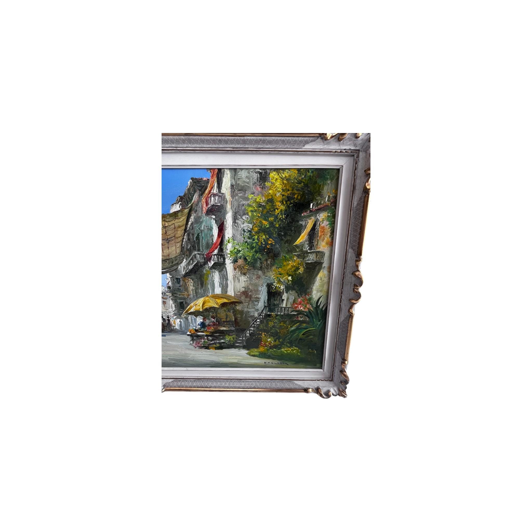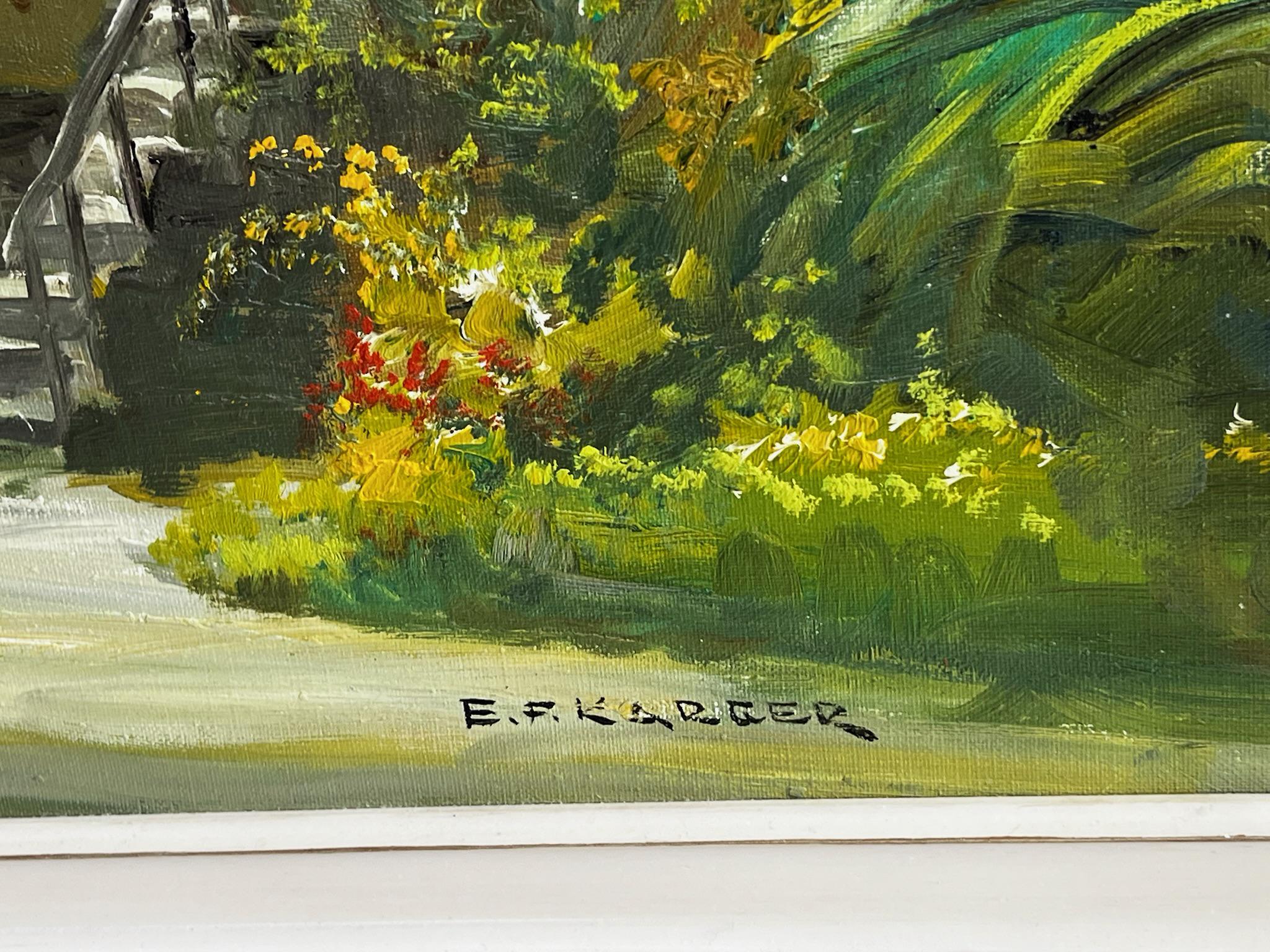 This beautiful artwork depicts a countryside city landscape c.1940's, is an oil painting on canvas by noted Austrian artist ERNST F. KARGER 1902- 1968 . Signed at the lower right corner by the artist. It is in very good condition.