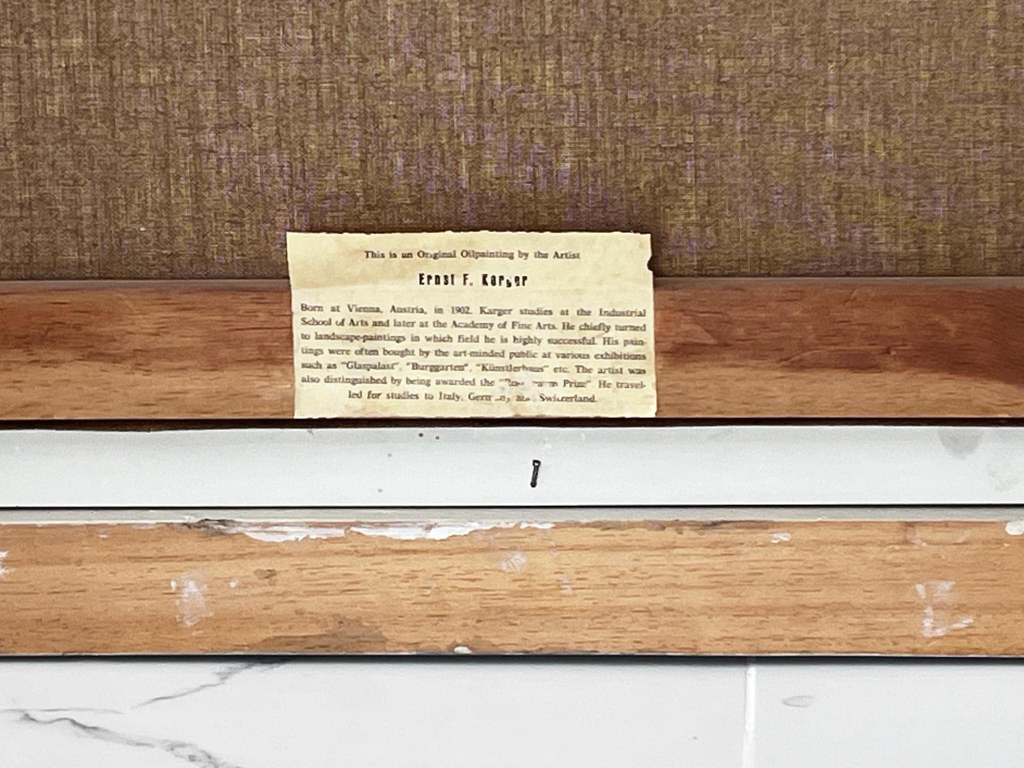 Born at Vienna, Austria, in 1902 , Karger studied at the Industrial school of arts and later at the academy of fine arts. He chiefly turned to landscape - Paintings in which field he is highly successful. His paintings were often bought by the art - minded public at various exhibitions such as " Glaspalast " , Burggarten ", Kunstlerhaus", etc. The artist was also distinguished by being awarded the " Rosenbaum - Prize" . He travelled for studies to Italy, Germany and Switzerland.