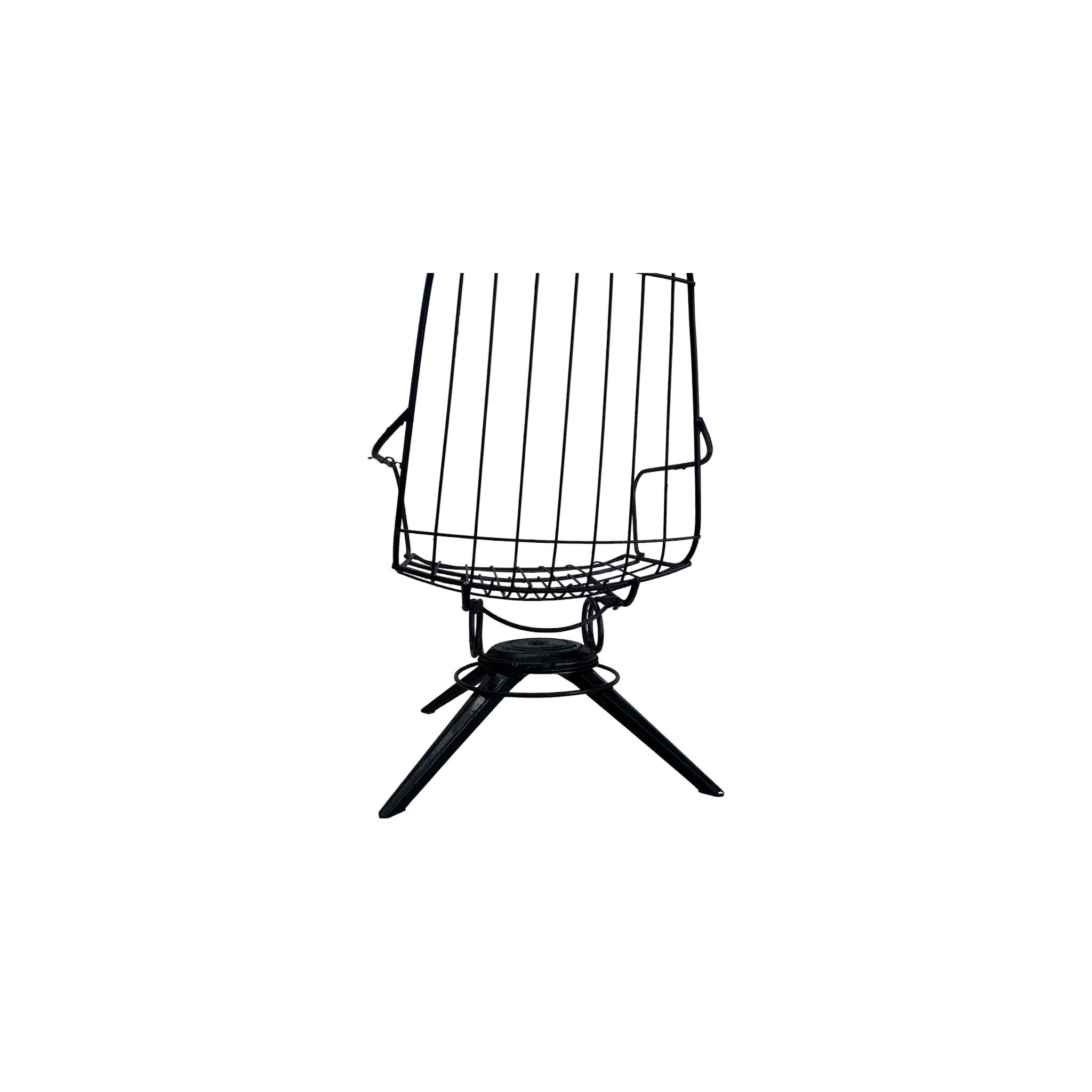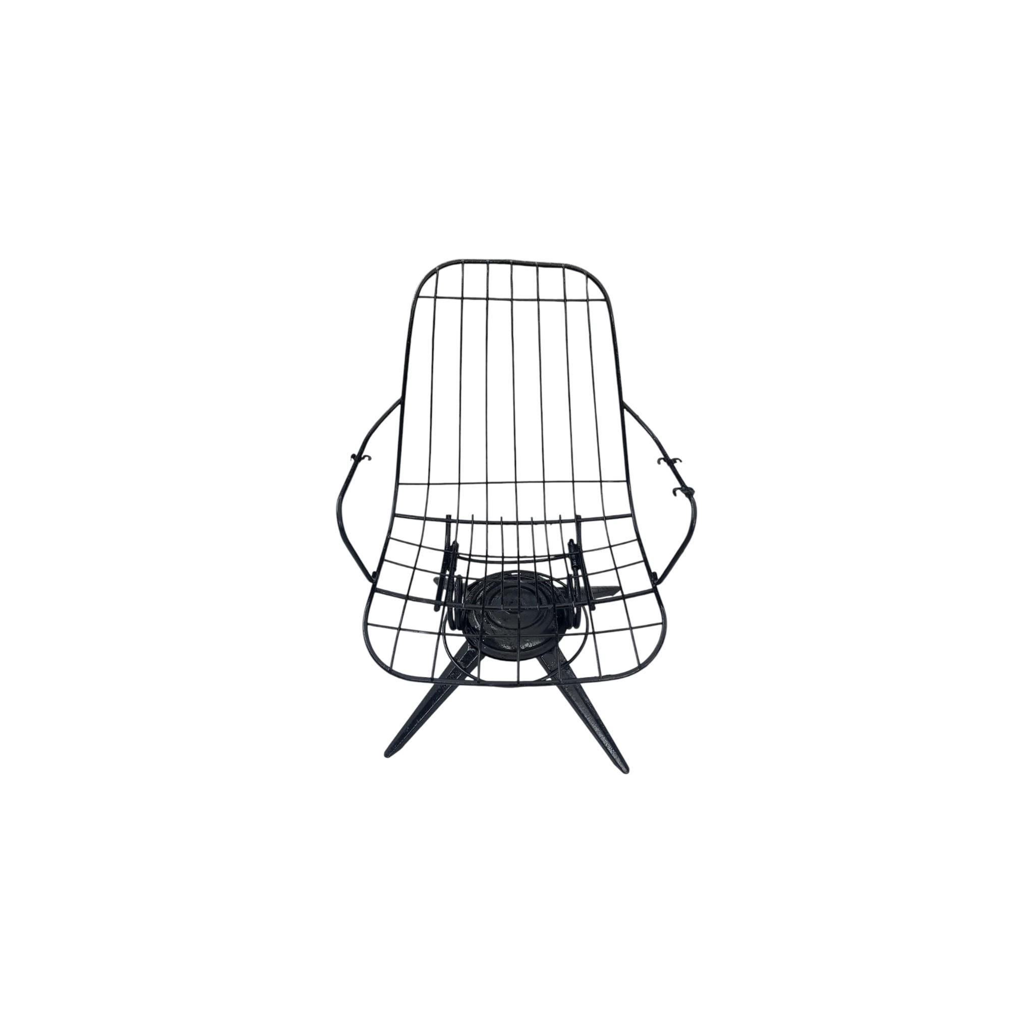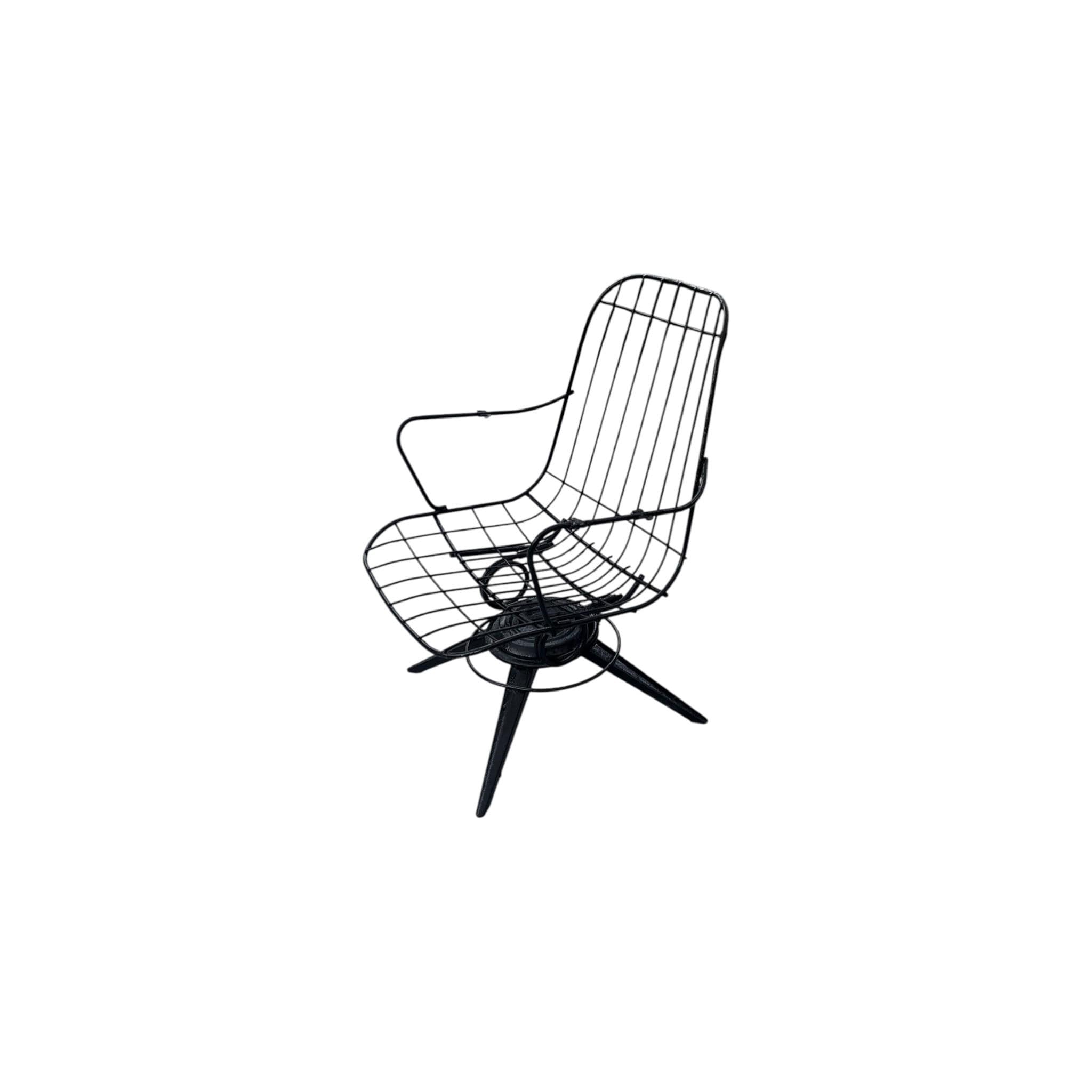 The Mid Century Modern Homecrest Wire Patio Rocking Chair is a stylish and unique piece of antique furniture. Featuring a sleek black wire design with a swivel feature, this chair is perfect for outdoor patios or lounges. Its mid-century modern style and original design make it a standout piece for any home or space.