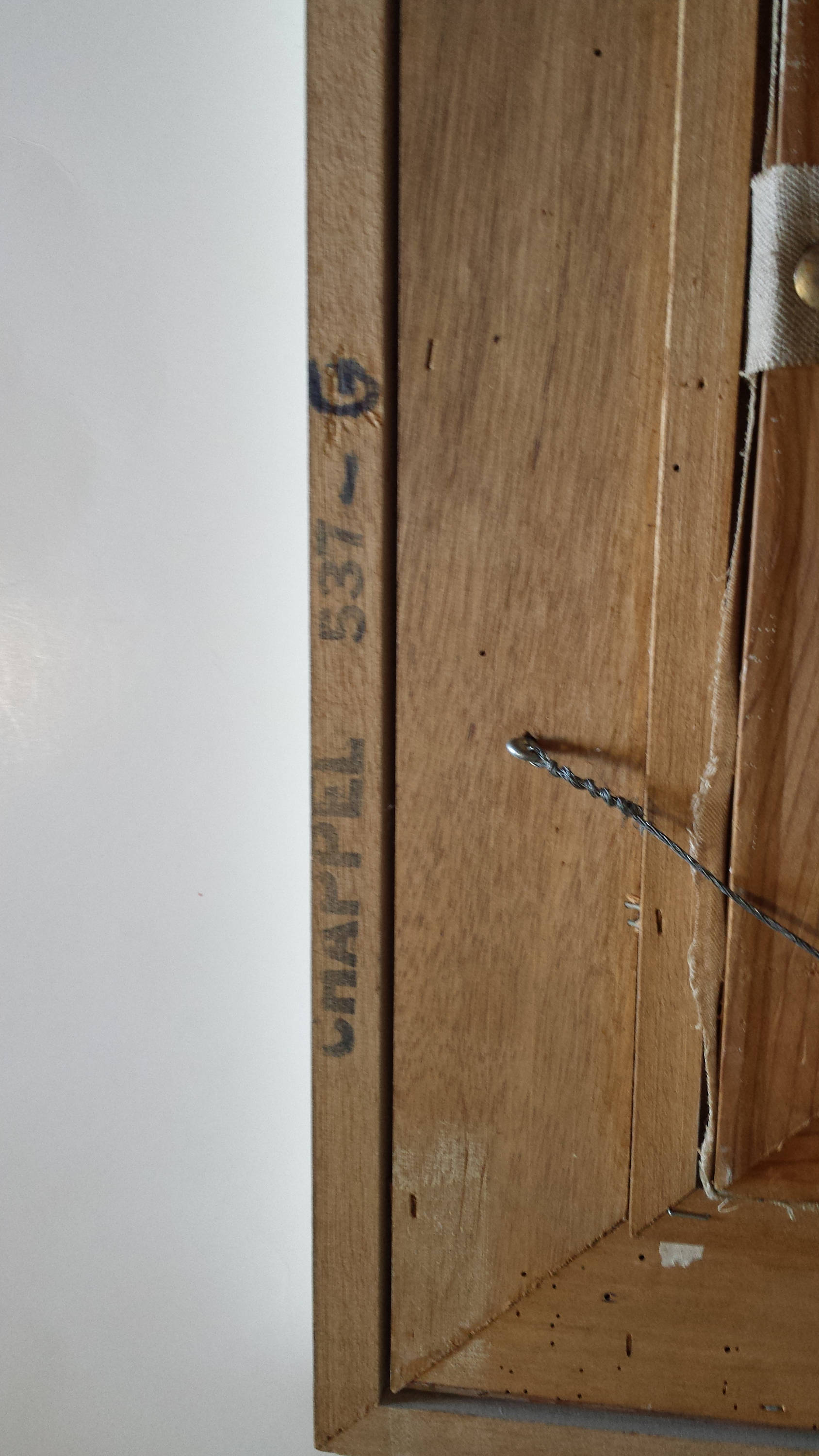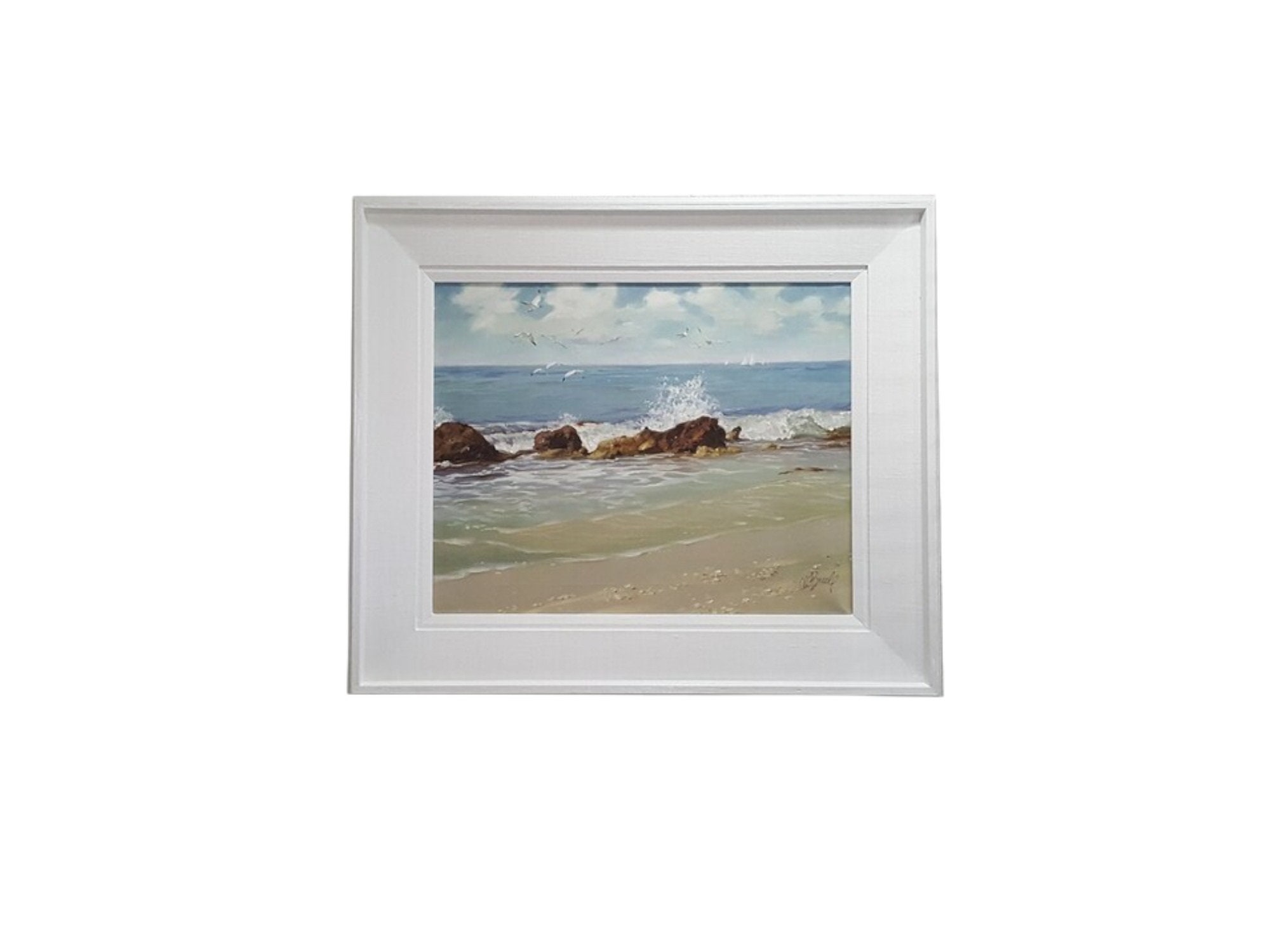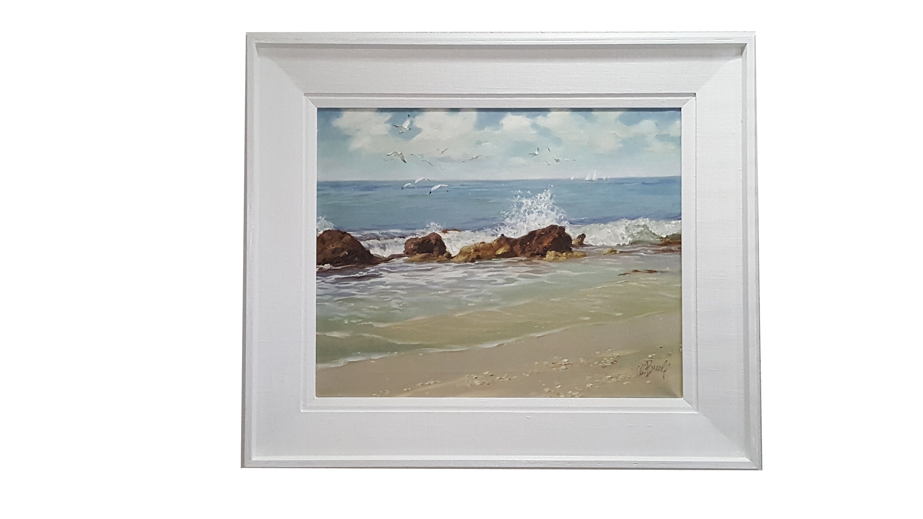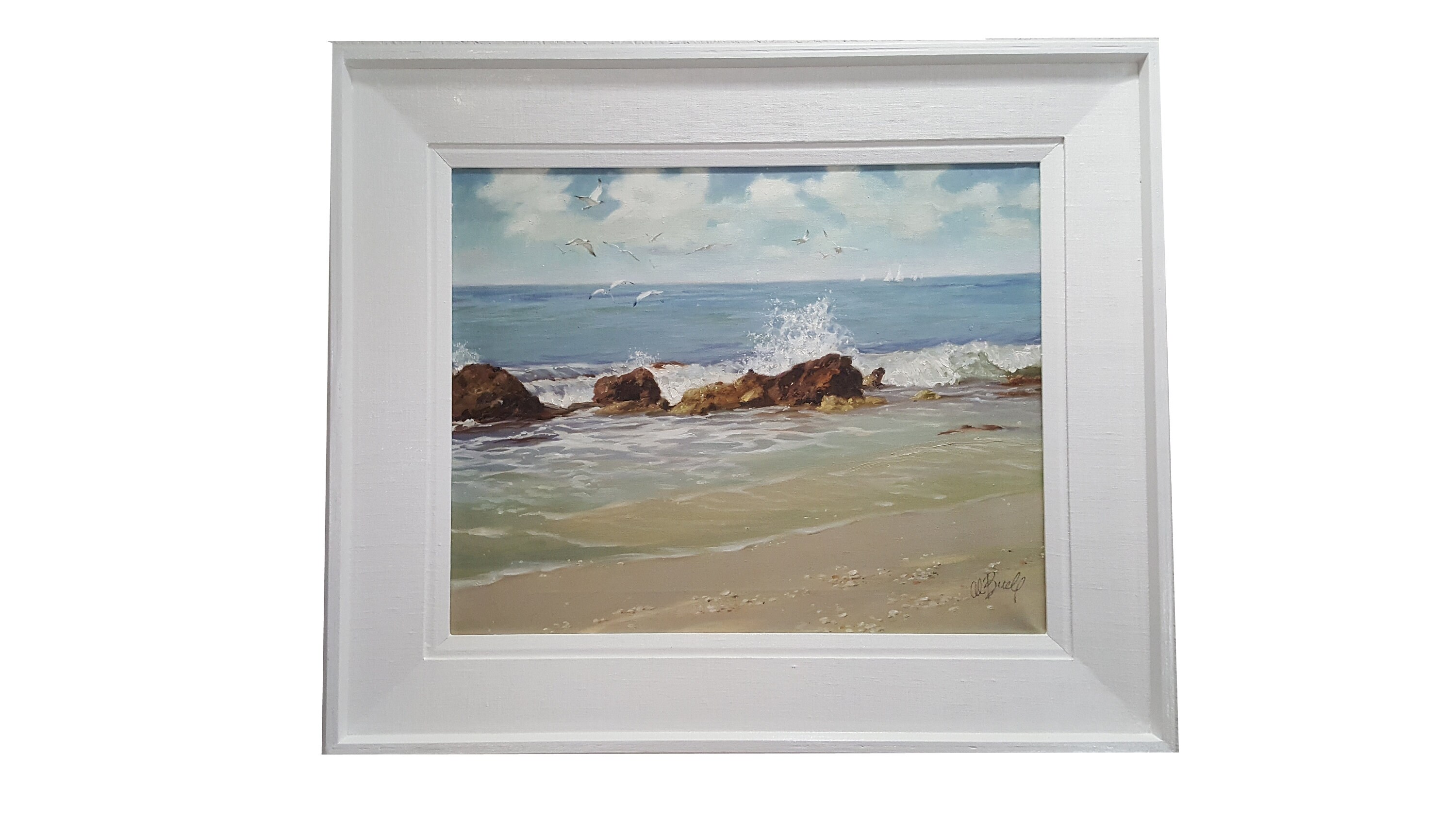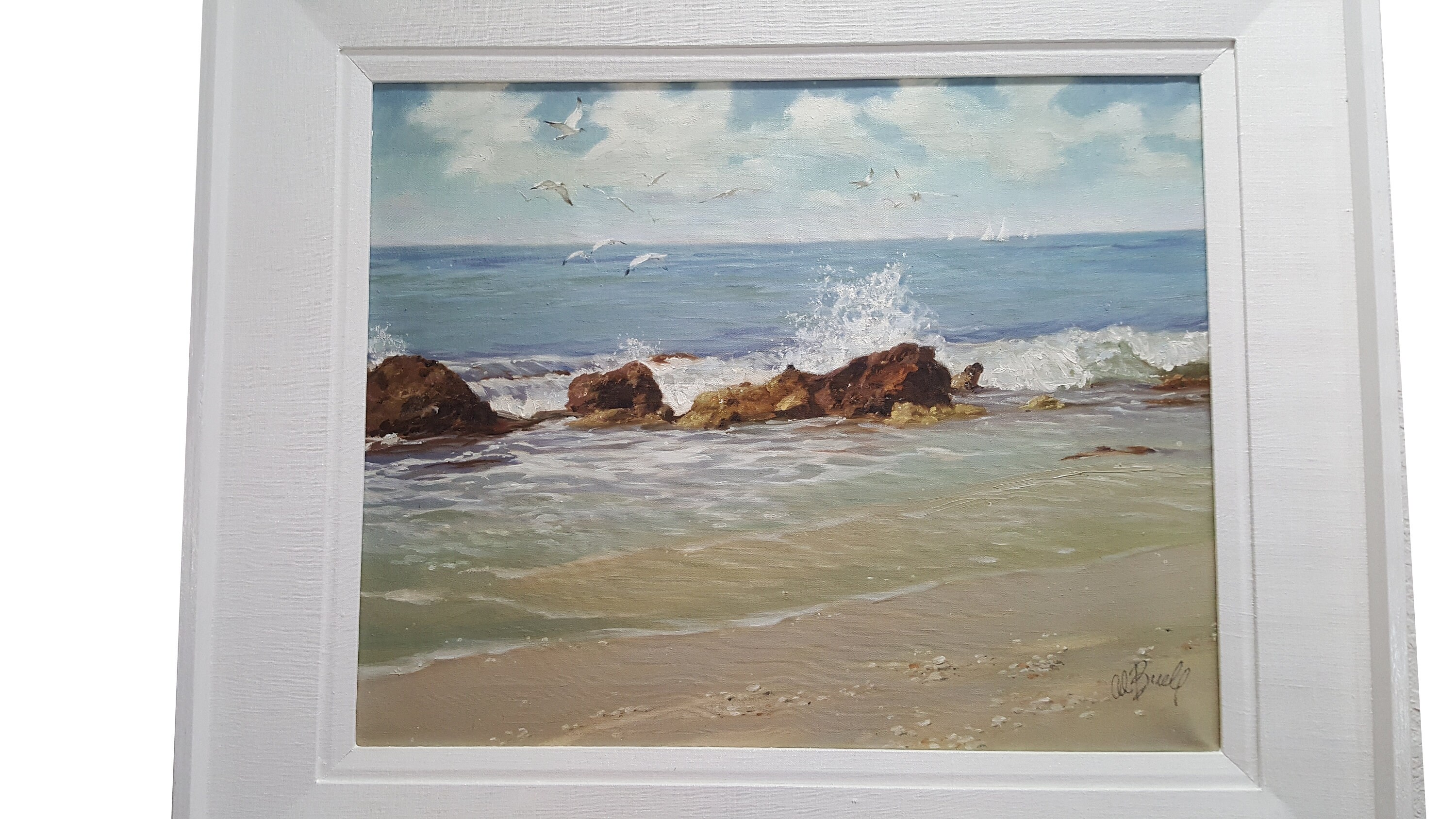 The frame had some aging imperfections and it was painted on white gloss Benjamin Moore Advance paint.