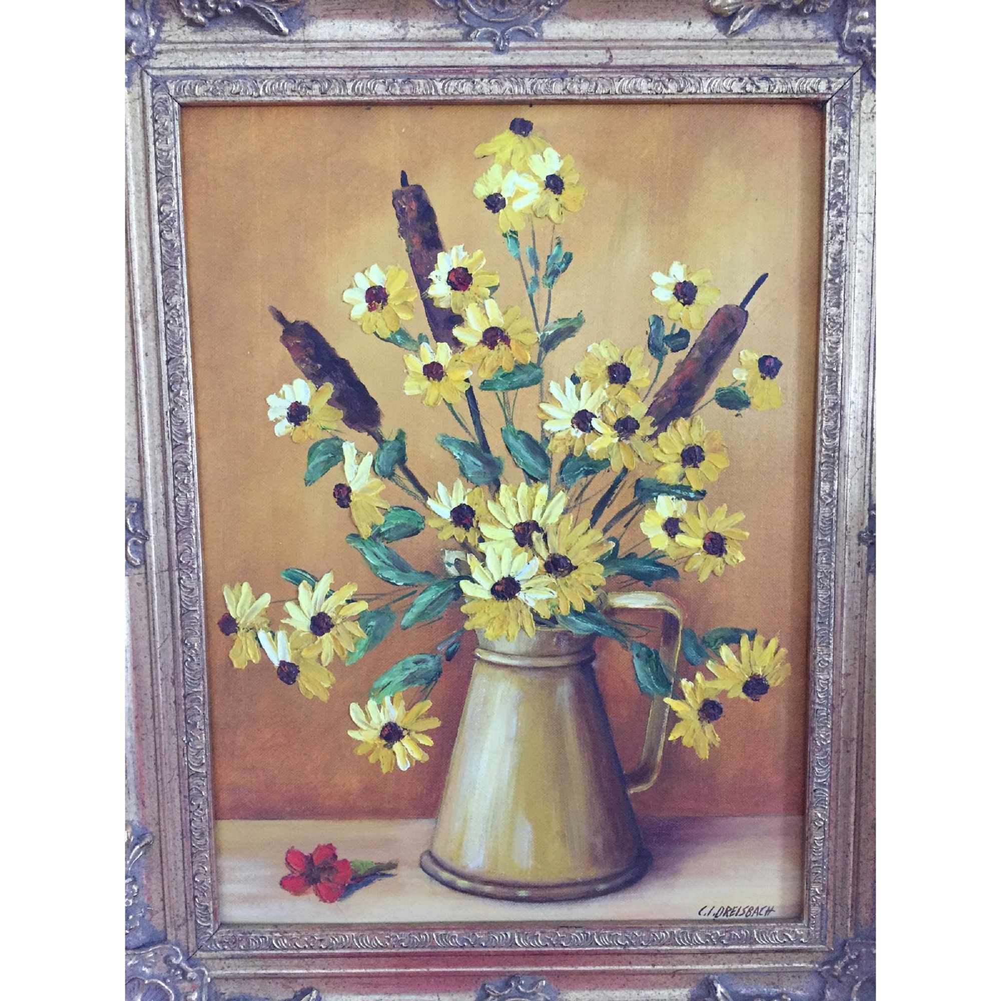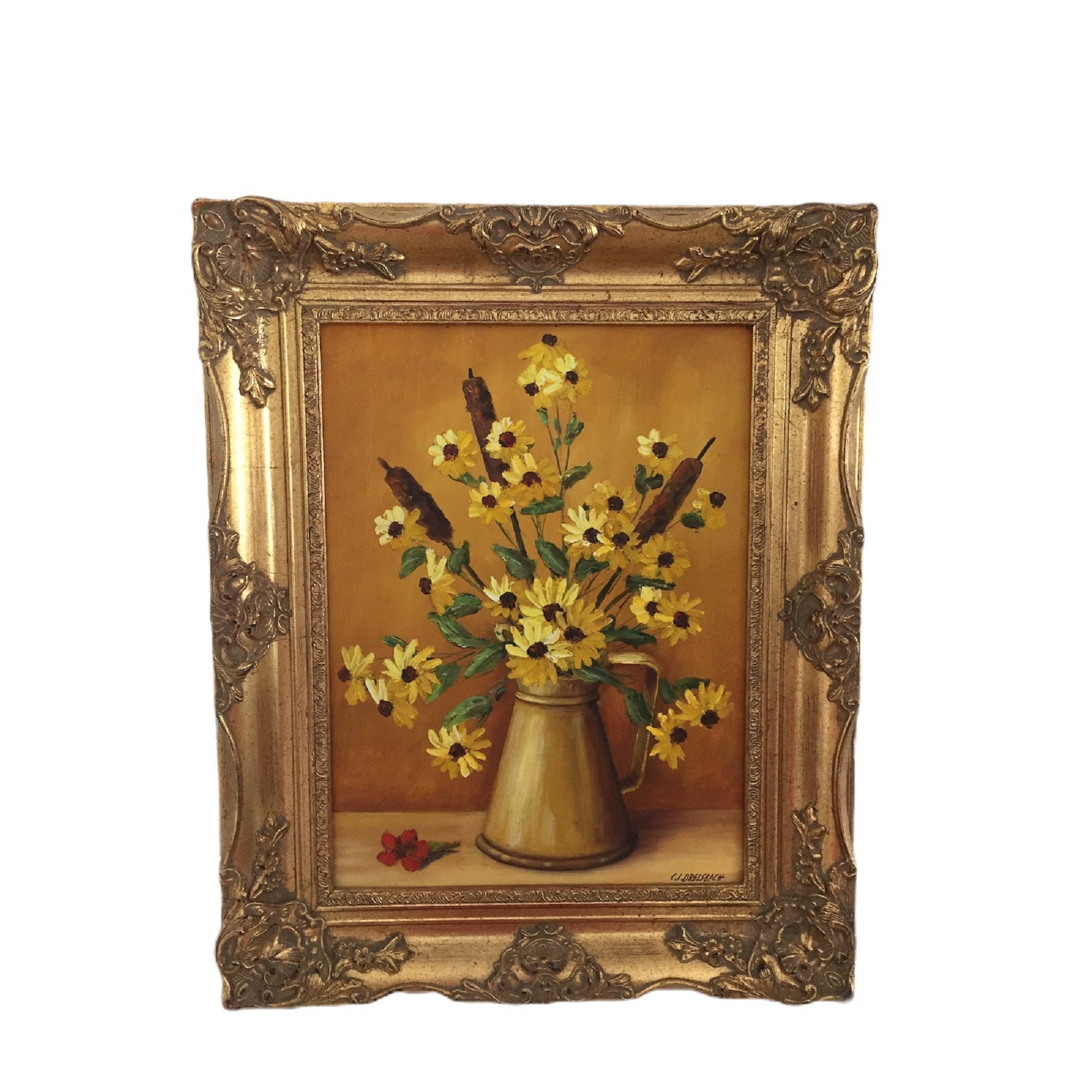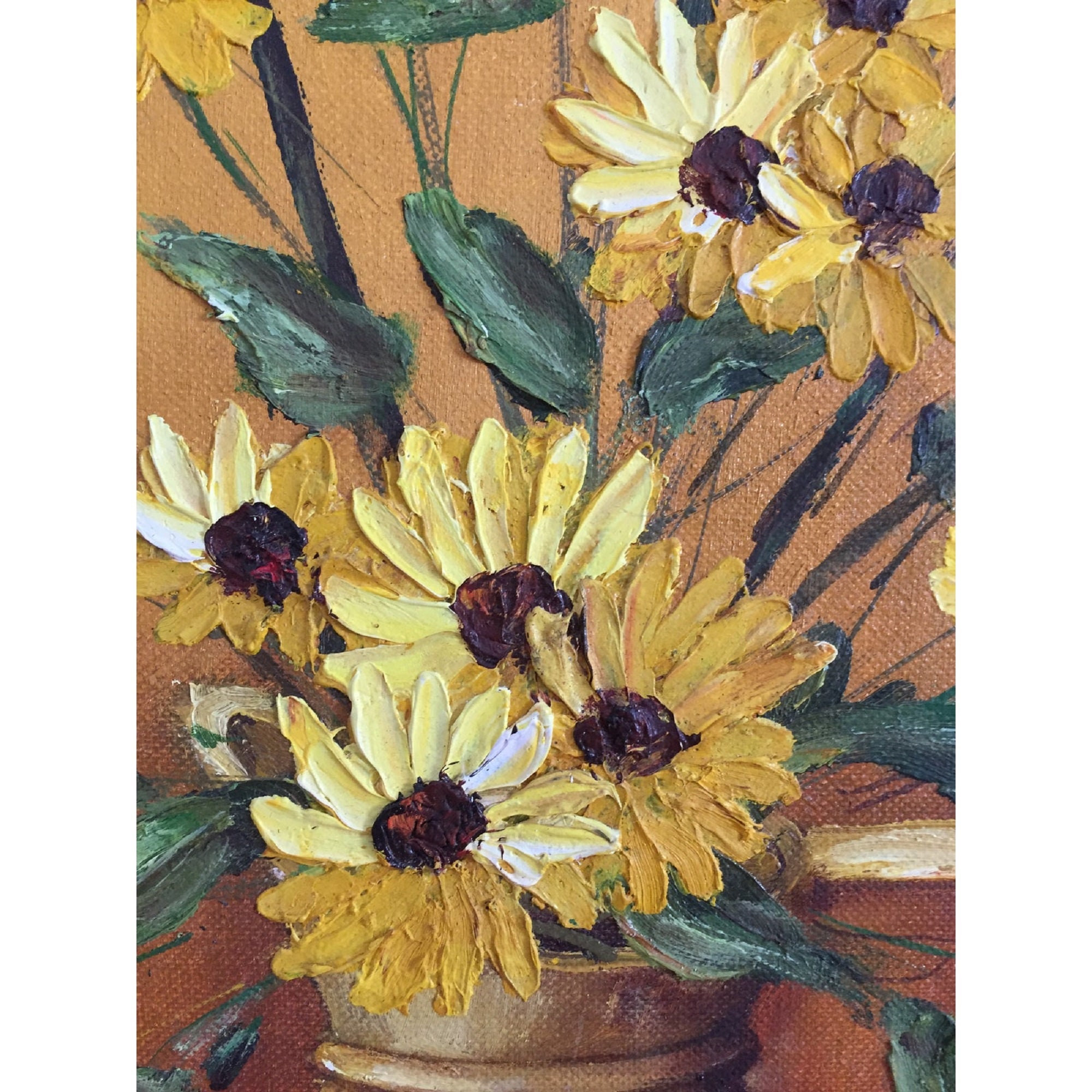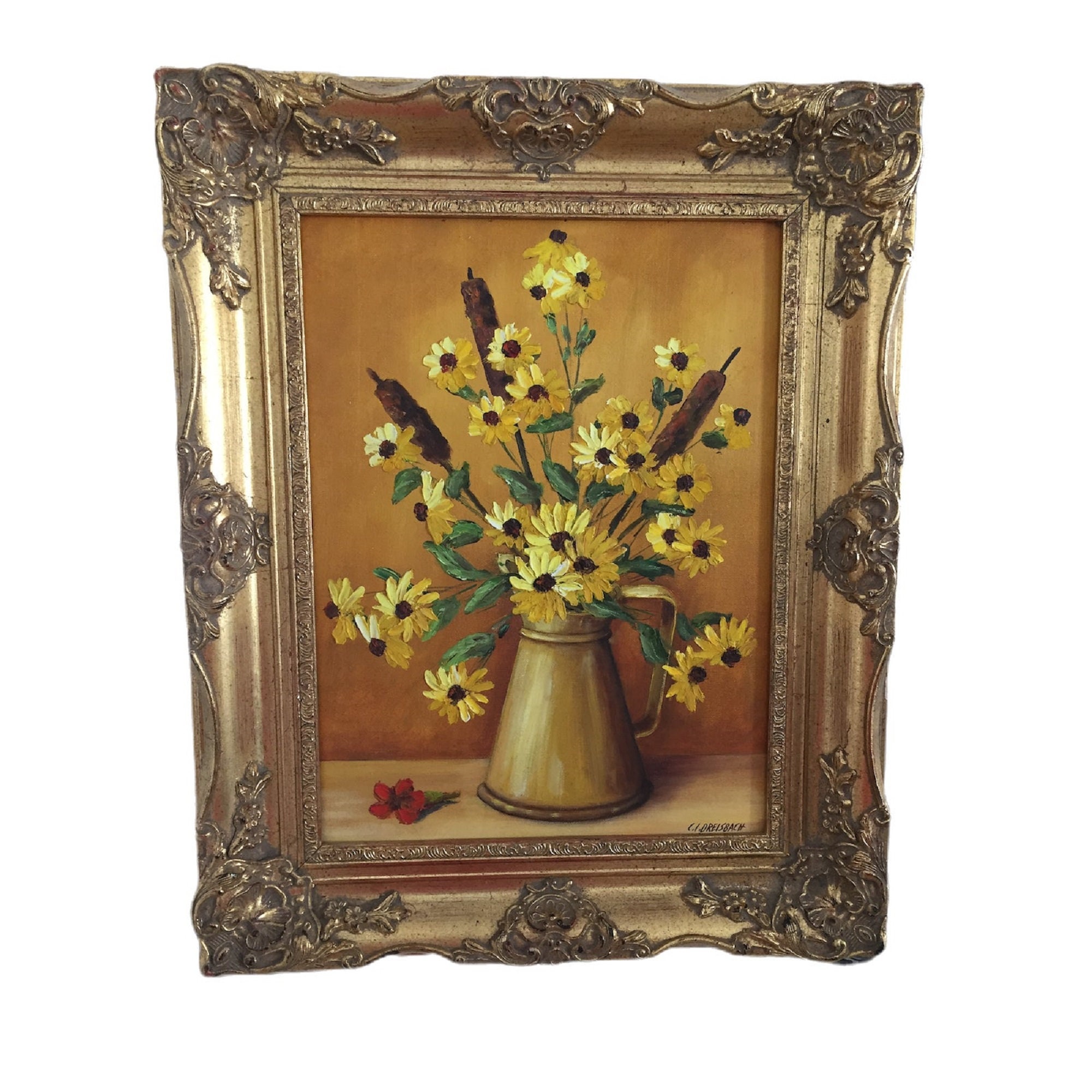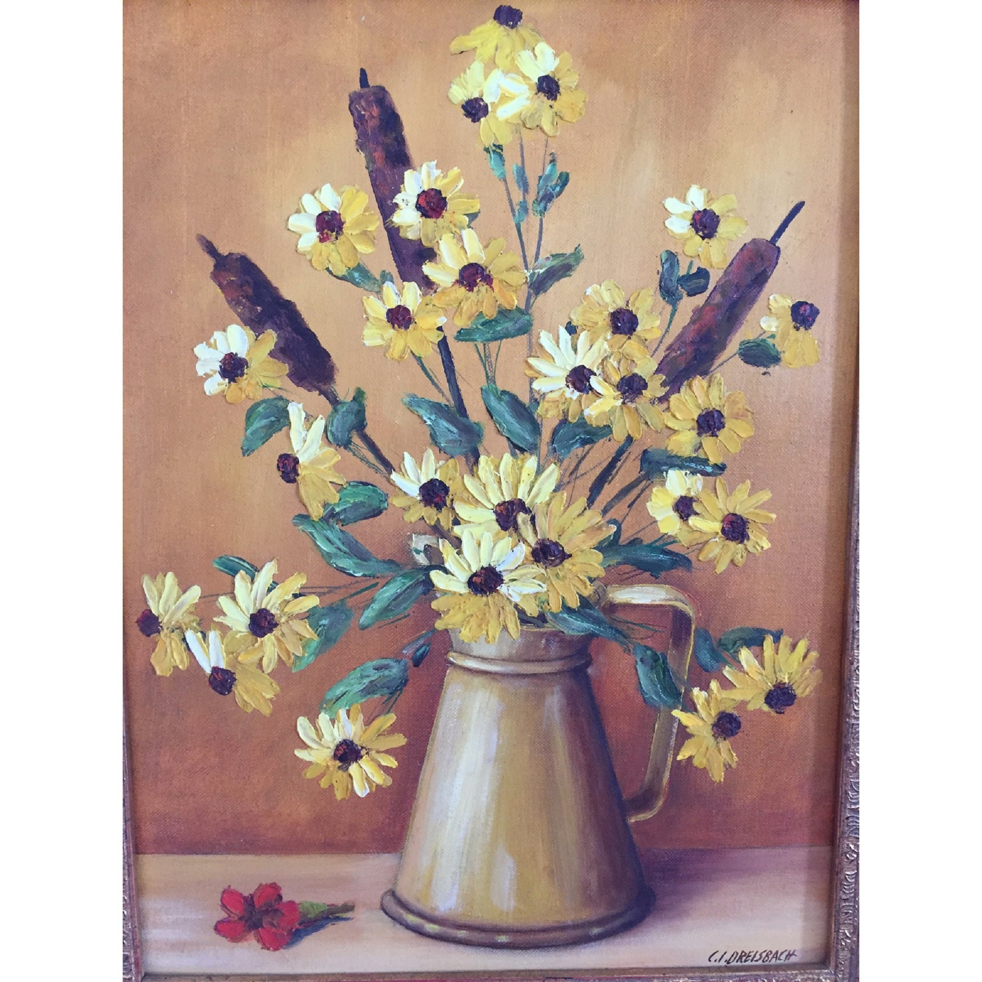 This is an original oil painting by Clarence I. Dreisbach with a number on the back of "2947" and a title of "Yellow Daisies". The painting is in great shape