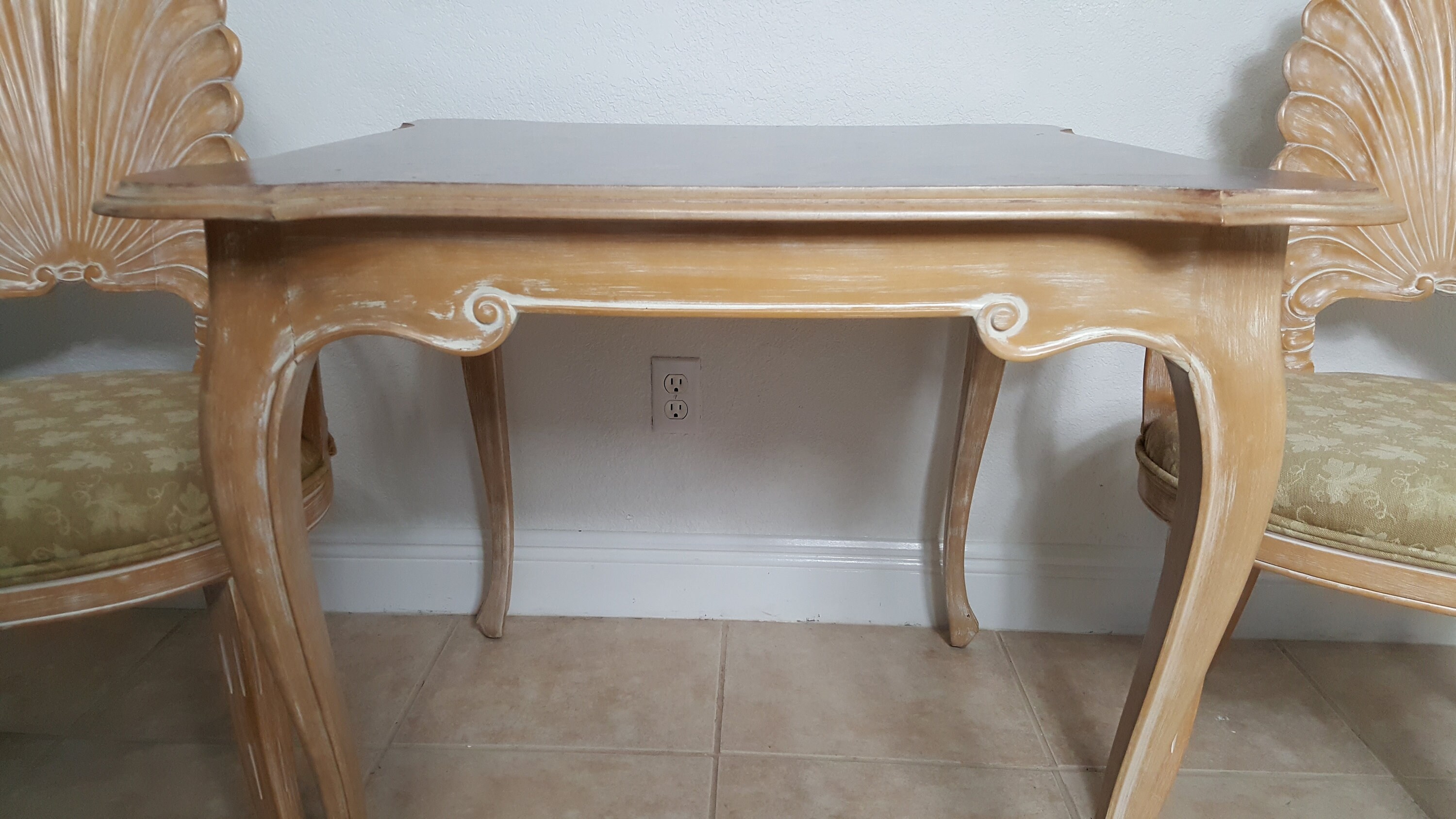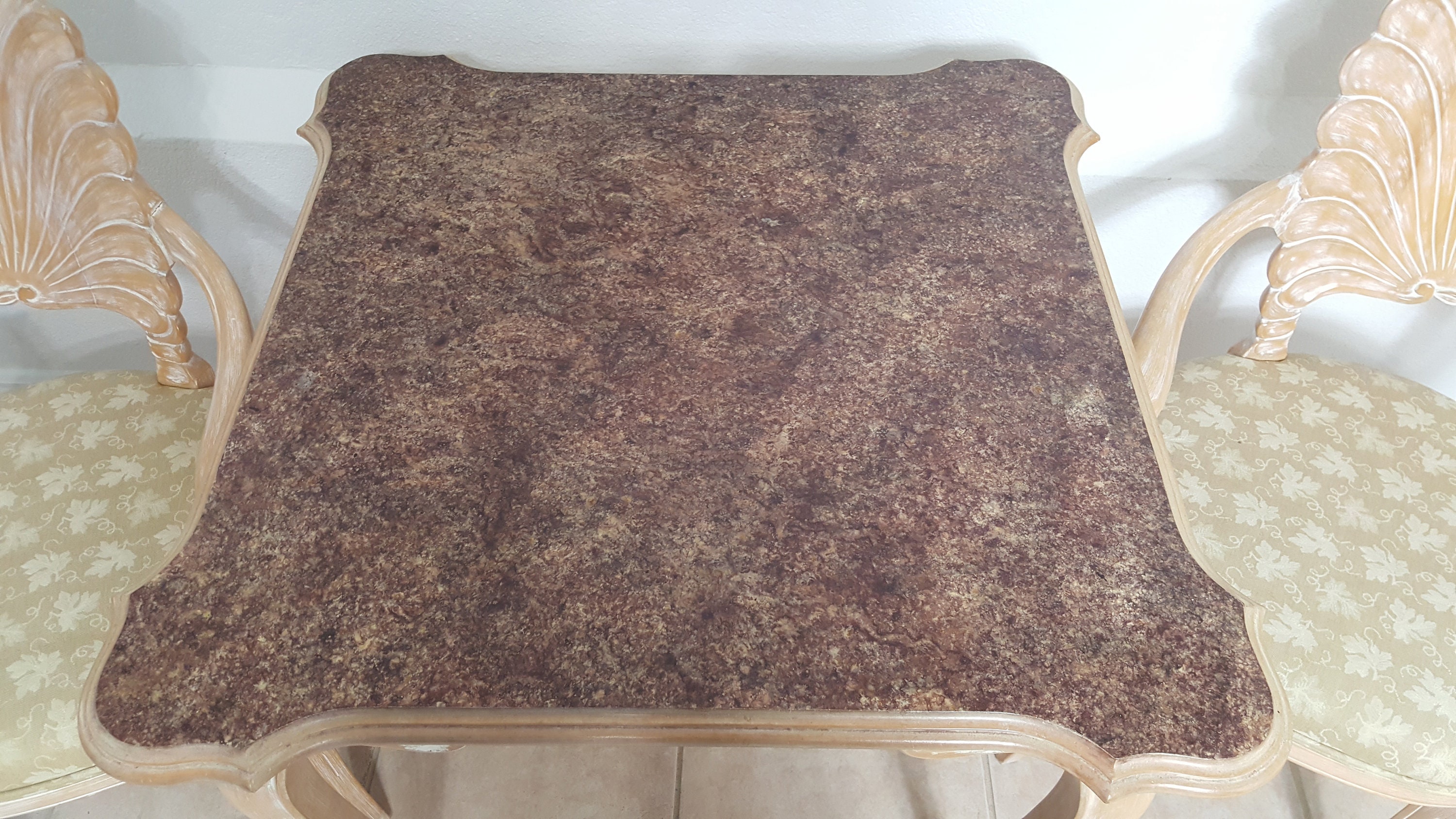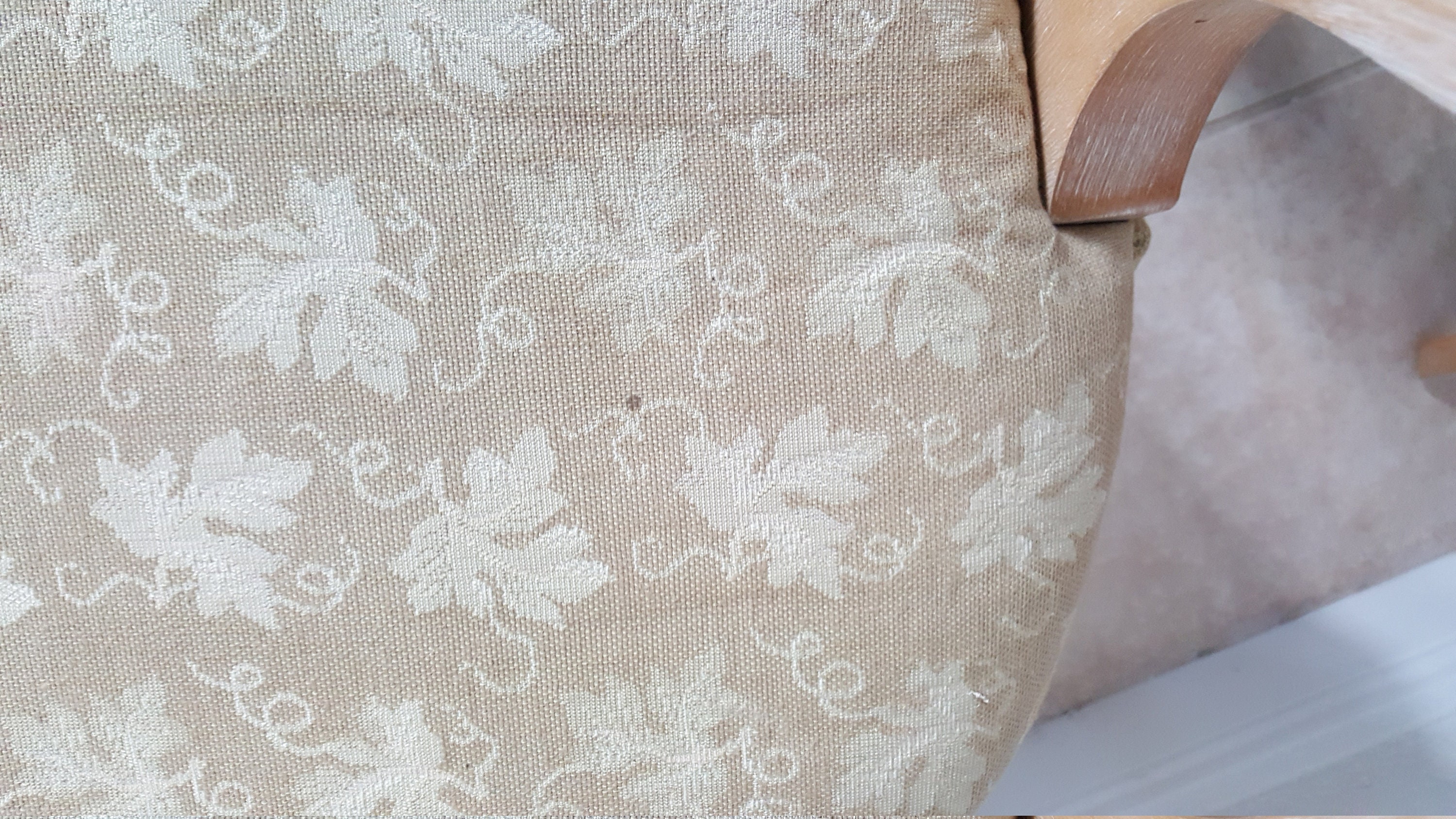 The fabric in one chair has some small stain, see last photo.